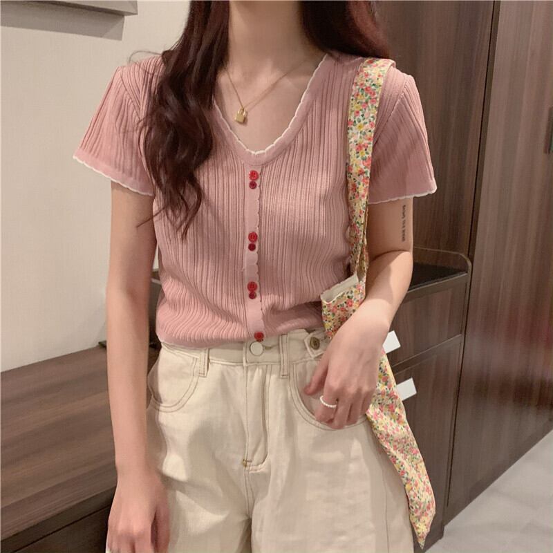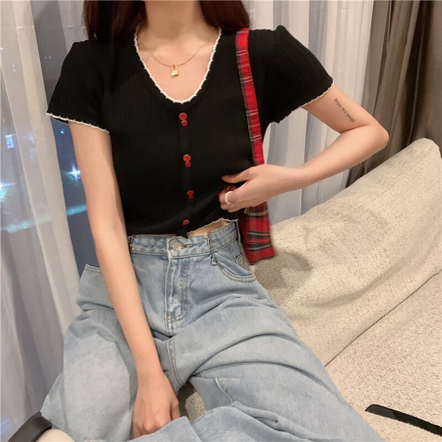 夏可愛いVネック Tシャツ フリーサイズ 着丈 43㎝ 肩幅 37㎝ 袖丈 15㎝ 撮影時のライティング、PCやスマートフォンの環境により写真の色味が実際の商品と異なって見える場合がございます。 ご了承の上お買い求めくださいませ。 ------------------------------------------------------ 販売価格は、表示された金額(表示価格/消費税込)と致します。 送料は別途かかります。 ◎いかなる場合でもご注文後のキャンセルはお受けいたしかねます。 *ご注文からお届けまでの期間* 即納商品:ご購入後より4-13日営業日 一度のお会計で複数ご購入頂いた場合、お届け時期が 遅い商品に合わせての発送となりますのでご了承下さい。 ※年始・GW・お盆・年末等を挟む場合はプラス1週間程のお時間をいただきます。 (他の仕事等、多忙の期間は発送が遅れる場合がございますのでご了承ください。) 商品に欠陥がある場合を除き、基本的には返品には応じません。 -------------------------------------------------