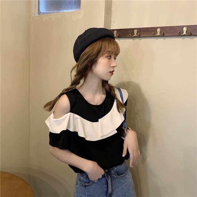 【MumuIns 】 Uネック ショットTシャツ A0032