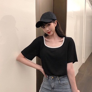 Uネック 短Tシャツ モデル身長:163㎝ 着丈: 54㎝ 肩幅: 36㎝ 袖丈: 24㎝ 撮影時のライティング、PCやスマートフォンの環境により写真の色味が実際の商品と異なって見える場合がございます。 ご了承の上お買い求めくださいませ。 ------------------------------------------------------ 販売価格は、表示された金額(表示価格/消費税込)と致します。 送料は別途かかります。 ◎いかなる場合でもご注文後のキャンセルはお受けいたしかねます。 *ご注文からお届けまでの期間* 即納商品:ご購入後より4-13日営業日 一度のお会計で複数ご購入頂いた場合、お届け時期が 遅い商品に合わせての発送となりますのでご了承下さい。 ※年始・GW・お盆・年末等を挟む場合はプラス1週間程のお時間をいただきます。 (他の仕事等、多忙の期間は発送が遅れる場合がございますのでご了承ください。) 商品に欠陥がある場合を除き、基本的には返品には応じません。 -------------------------------------------------