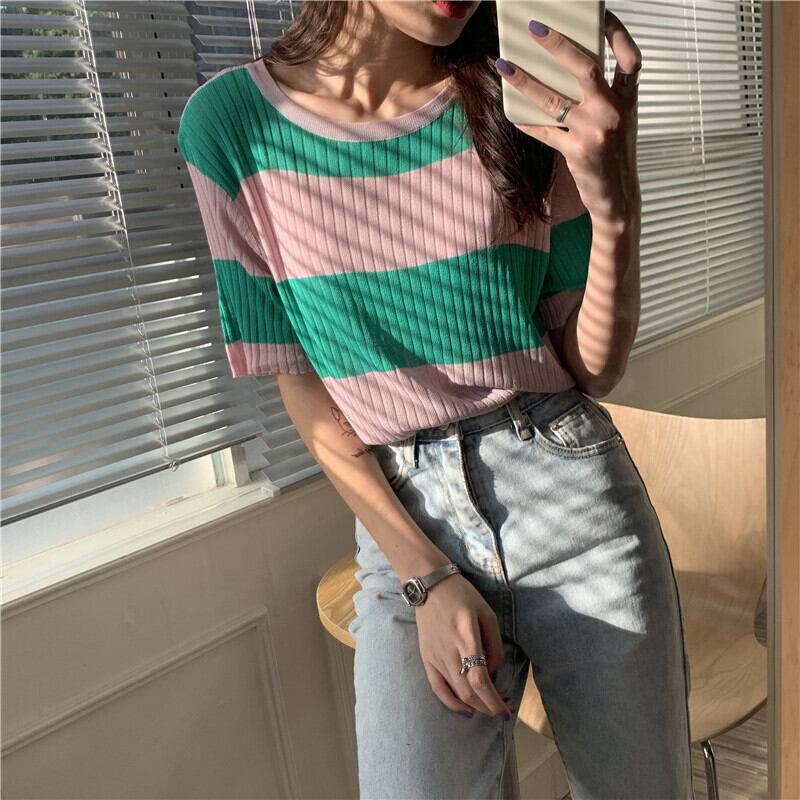 ストライプTシャツ モデル身長:165㎝ フリーサイズ 着丈:45㎝ 肩幅:37㎝ 袖丈:24㎝ 撮影時のライティング、PCやスマートフォンの環境により写真の色味が実際の商品と異なって見える場合がございます。 ご了承の上お買い求めくださいませ。 ------------------------------------------------------ 販売価格は、表示された金額(表示価格/消費税込)と致します。 送料は別途かかります。 ◎いかなる場合でもご注文後のキャンセルはお受けいたしかねます。 *ご注文からお届けまでの期間* 即納商品:ご購入後より4-13日営業日 一度のお会計で複数ご購入頂いた場合、お届け時期が 遅い商品に合わせての発送となりますのでご了承下さい。 ※年始・GW・お盆・年末等を挟む場合はプラス1週間程のお時間をいただきます。 (他の仕事等、多忙の期間は発送が遅れる場合がございますのでご了承ください。) 商品に欠陥がある場合を除き、基本的には返品には応じません。 -------------------------------------------------