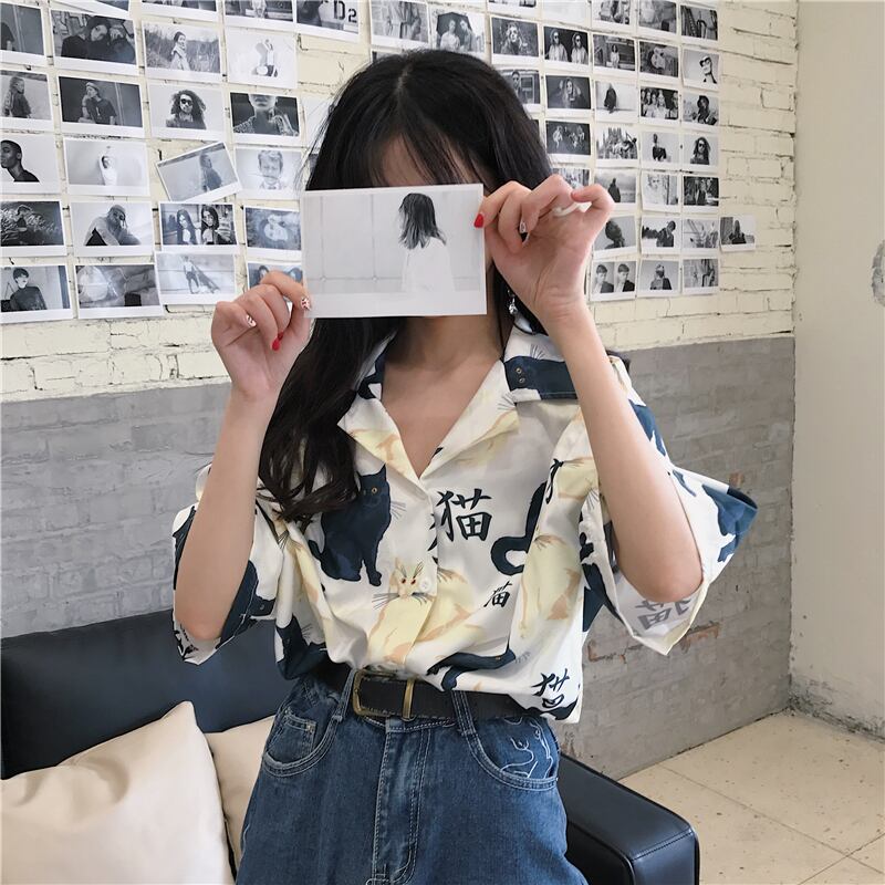 【MumuIns 】 可愛い猫柄シャツ A0124