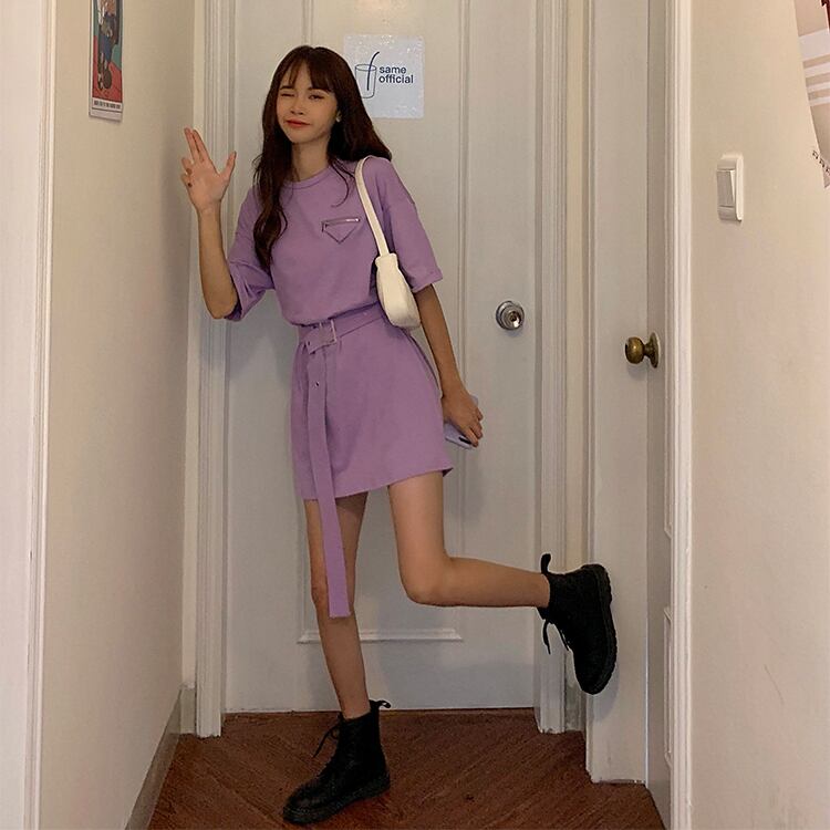 【MumuIns 】 夏新作2色可愛いベルト付きワンピース A0222