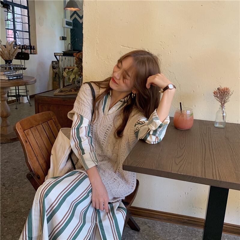 【MumuIns 】 おしゃれカントリースタイル2点セットアップ シャツ+セーター A0307