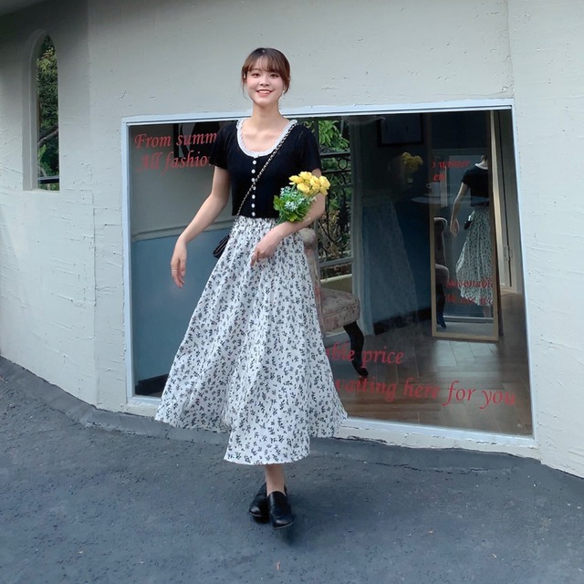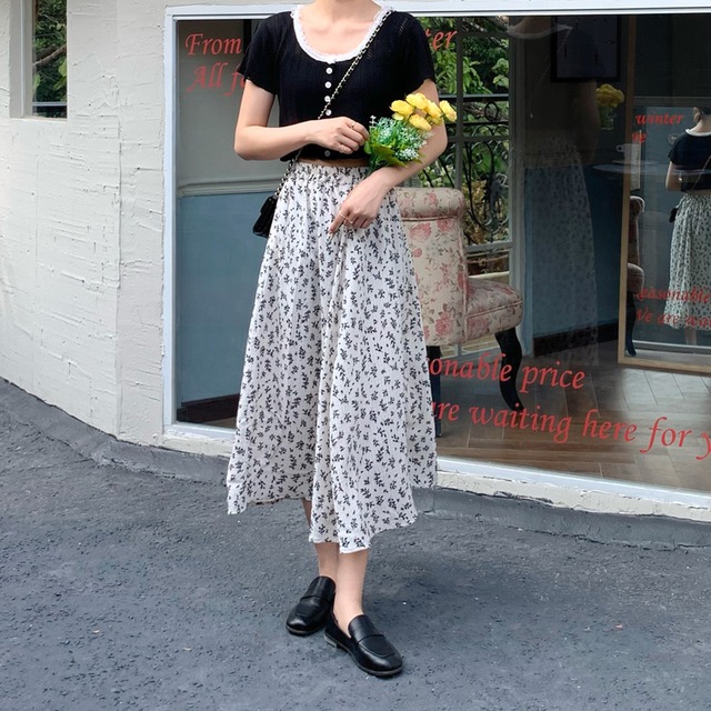 【春のドレス】春のスカート、可愛い花柄2色スカート A0524