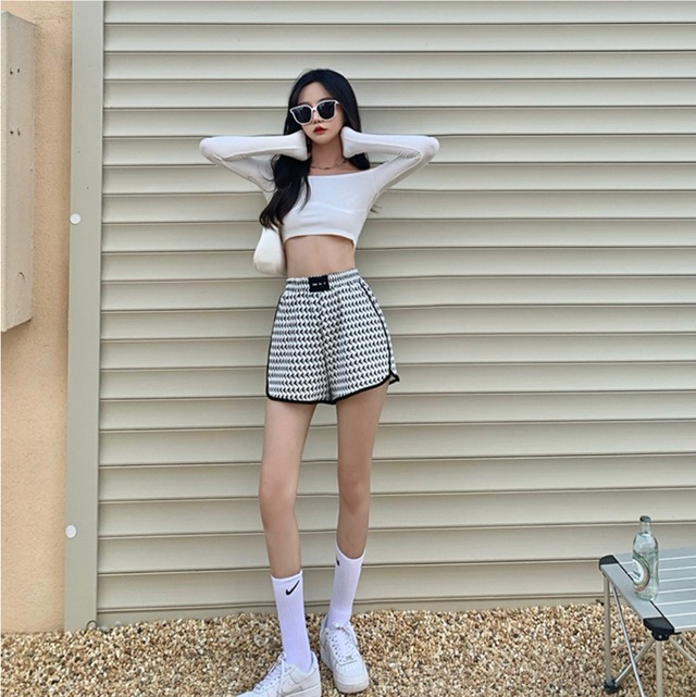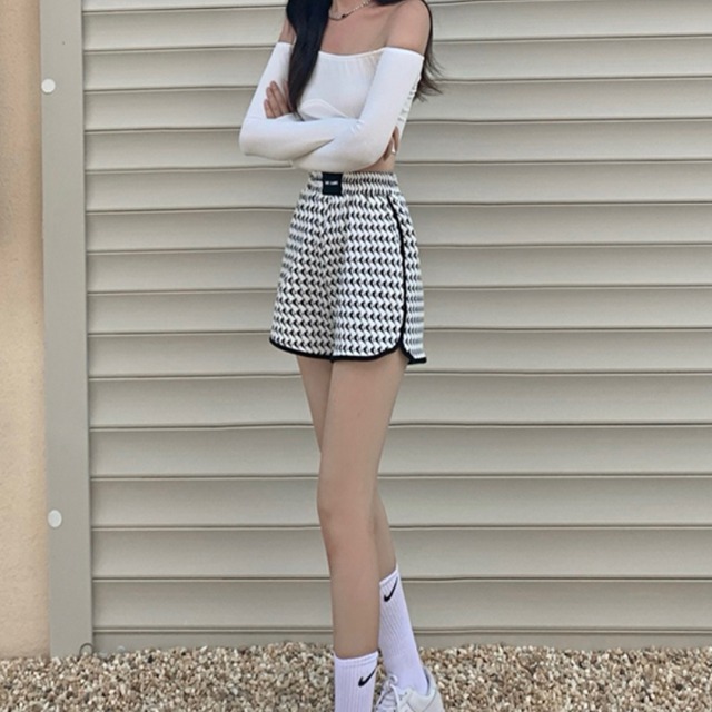 定番商品、チェック柄ワイドレッグショーツ A0723