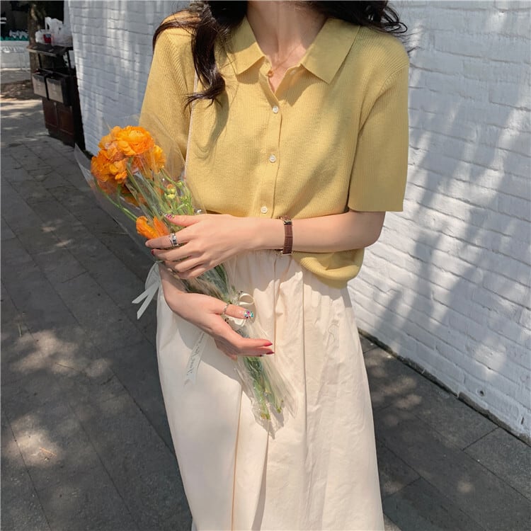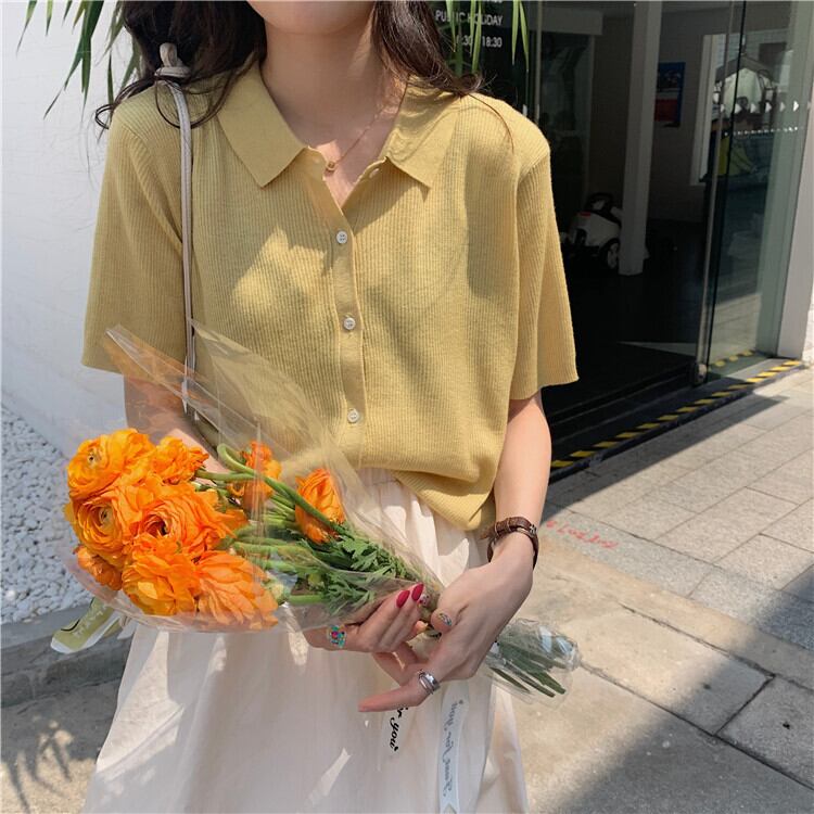 韓国風ニート、POLO半袖トップス フリーサイズ 着 丈:47㎝ バスト:92㎝ 肩 幅:35㎝ 袖 丈:20㎝ 撮影時のライティング、PCやスマートフォンの環境により写真の色味が実際の商品と異なって見える場合がございます。 ご了承の上お買い求めくださいませ。 ------------------------------------------------------ 販売価格は、表示された金額(表示価格/消費税込)と致します。 送料は別途かかります。 ◎いかなる場合でもご注文後のキャンセルはお受けいたしかねます。 *ご注文からお届けまでの期間* 即納商品:ご購入後より4-10日営業日 一度のお会計で複数ご購入頂いた場合、お届け時期が 遅い商品に合わせての発送となりますのでご了承下さい。 ※年始・GW・お盆・年末等を挟む場合はプラス1週間程のお時間をいただきます。 (他の仕事等、多忙の期間は発送が遅れる場合がございますのでご了承ください。) 商品に欠陥がある場合を除き、基本的には返品には応じません。