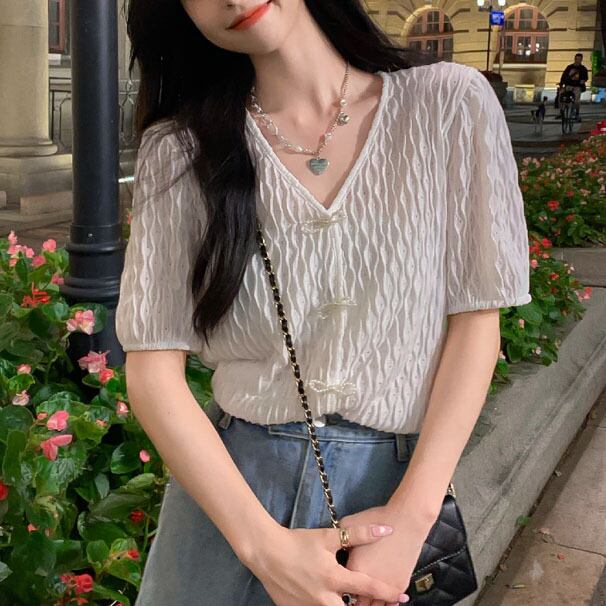 夏の新作人気デザインアップVネック半袖シャツ A0766
