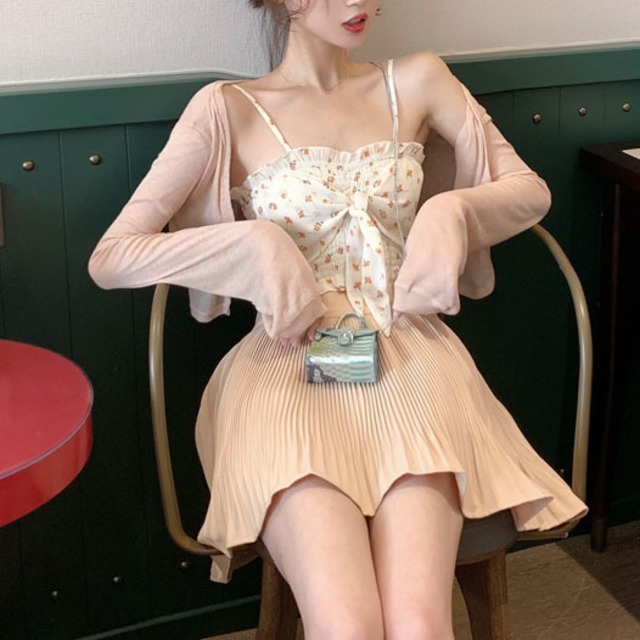 女性力アップ、可愛い花柄3点セットアップ A0769