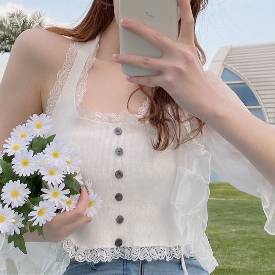 レースデザイン、日焼け止めキャミソール+シャツ2点セット