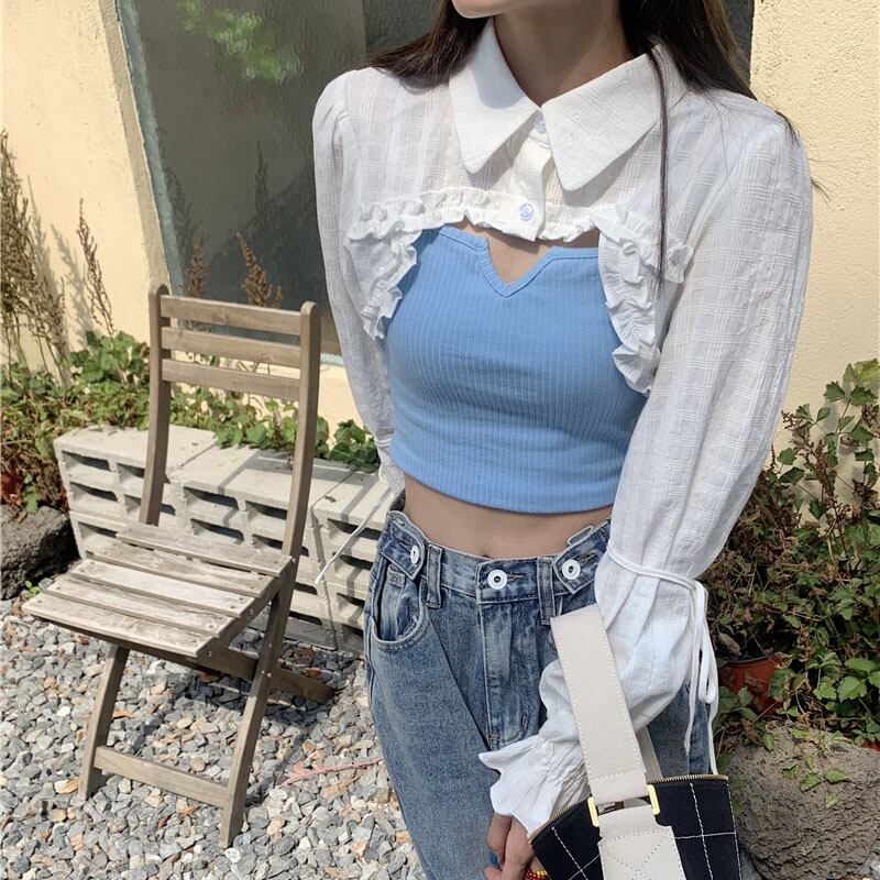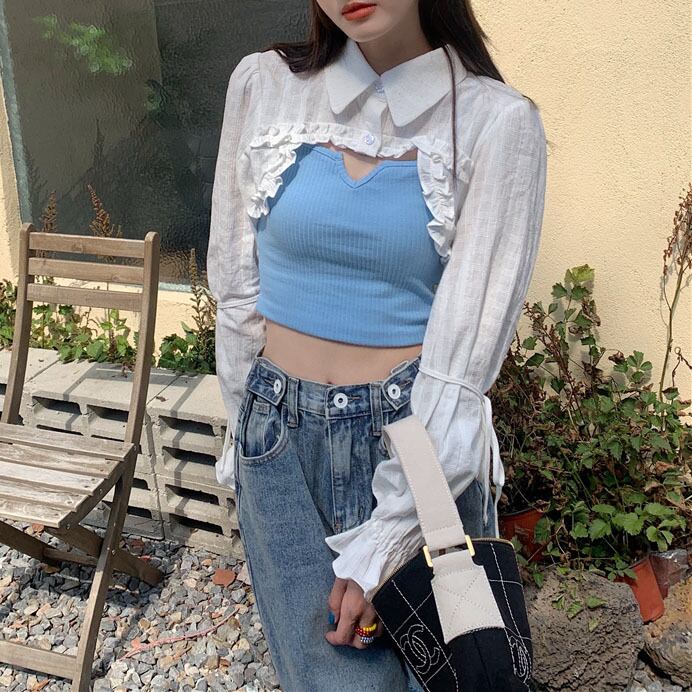 ガーリッシュシャツ+キャミソール2点セットアップ A0846