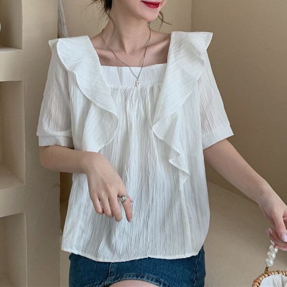 スクエアネックフリルシャツ A0852