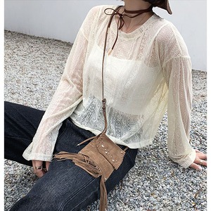UV対応、透かし彫りTシャツ+キャミソール2点セットアップ