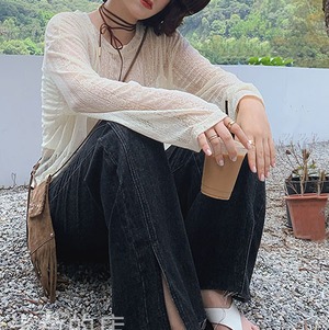 UV対応、透かし彫りTシャツ+キャミソール2点セットアップ A0862
