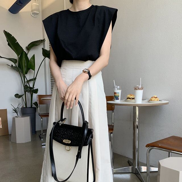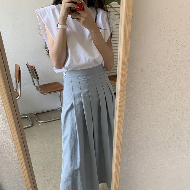 キャップスリーブTシャツ+スカート、2点セットアップ A0896