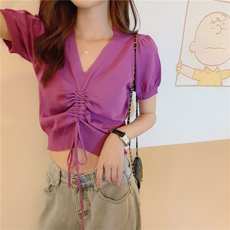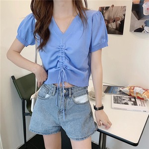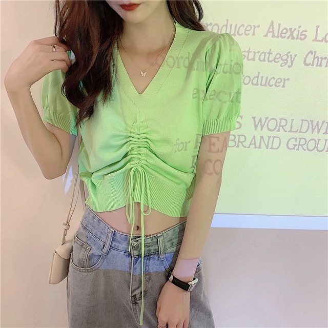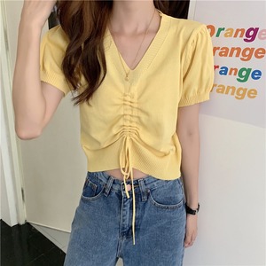 Vネックドローストリングニット6色トップス フリーサイズ 着 丈:46㎝ バスト:80㎝ 袖 丈:18㎝ 肩 幅:36㎝ 撮影時のライティング、PCやスマートフォンの環境により写真の色味が実際の商品と異なって見える場合がございます。 ご了承の上お買い求めくださいませ。 ------------------------------------------------------ 販売価格は、表示された金額(表示価格/消費税込)と致します。 送料は別途かかります。 ◎いかなる場合でもご注文後のキャンセルはお受けいたしかねます。 *ご注文からお届けまでの期間* 即納商品:ご購入後より4-10日営業日 一度のお会計で複数ご購入頂いた場合、お届け時期が 遅い商品に合わせての発送となりますのでご了承下さい。 ※年始・GW・お盆・年末等を挟む場合はプラス1週間程のお時間をいただきます。 (他の仕事等、多忙の期間は発送が遅れる場合がございますのでご了承ください。) 商品に欠陥がある場合を除き、基本的には返品には応じません。