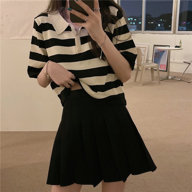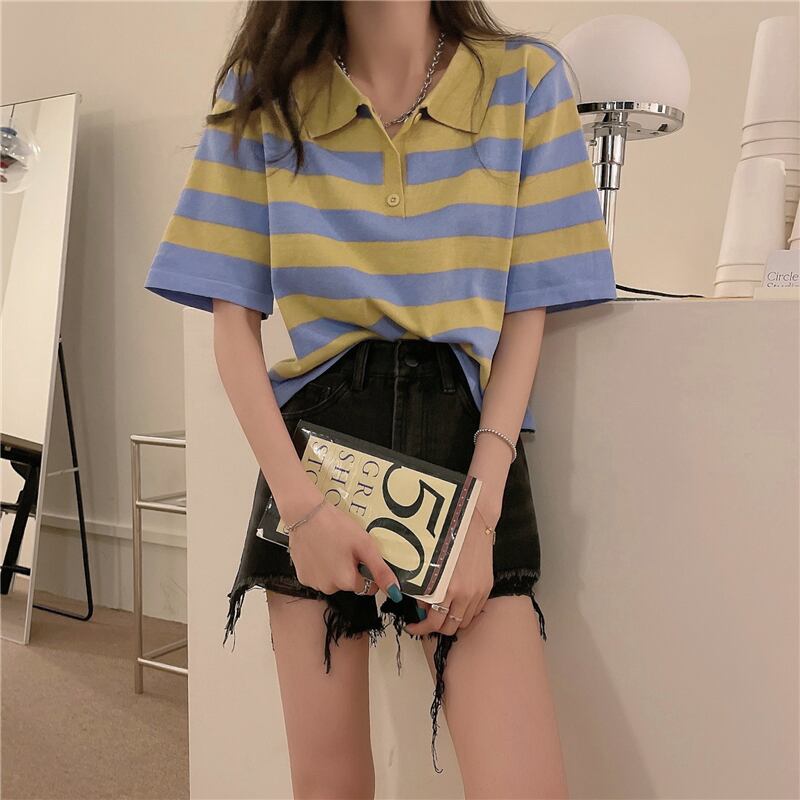 ボーダー柄POLOネックTシャツ フリーサイズ 着 丈:46㎝ バスト:96㎝ 袖 丈:25㎝ 肩 幅:37㎝ 撮影時のライティング、PCやスマートフォンの環境により写真の色味が実際の商品と異なって見える場合がございます。 ご了承の上お買い求めくださいませ。 ------------------------------------------------------ 販売価格は、表示された金額(表示価格/消費税込)と致します。 送料は別途かかります。 ◎いかなる場合でもご注文後のキャンセルはお受けいたしかねます。 *ご注文からお届けまでの期間* 即納商品:ご購入後より4-10日営業日 一度のお会計で複数ご購入頂いた場合、お届け時期が 遅い商品に合わせての発送となりますのでご了承下さい。 ※年始・GW・お盆・年末等を挟む場合はプラス1週間程のお時間をいただきます。 (他の仕事等、多忙の期間は発送が遅れる場合がございますのでご了承ください。) 商品に欠陥がある場合を除き、基本的には返品には応じません。