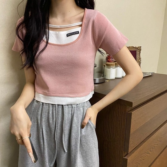 韓国風偽2点Tシャツ フリーサイズ 着 丈:41㎝ バスト:74㎝ 袖 丈:17㎝ 肩 幅:30㎝ 撮影時のライティング、PCやスマートフォンの環境により写真の色味が実際の商品と異なって見える場合がございます。 ご了承の上お買い求めくださいませ。 ------------------------------------------------------ 販売価格は、表示された金額(表示価格/消費税込)と致します。 送料は別途かかります。 ◎いかなる場合でもご注文後のキャンセルはお受けいたしかねます。 *ご注文からお届けまでの期間* 即納商品:ご購入後より4-10日営業日 一度のお会計で複数ご購入頂いた場合、お届け時期が 遅い商品に合わせての発送となりますのでご了承下さい。 ※年始・GW・お盆・年末等を挟む場合はプラス1週間程のお時間をいただきます。 (他の仕事等、多忙の期間は発送が遅れる場合がございますのでご了承ください。) 商品に欠陥がある場合を除き、基本的には返品には応じません。