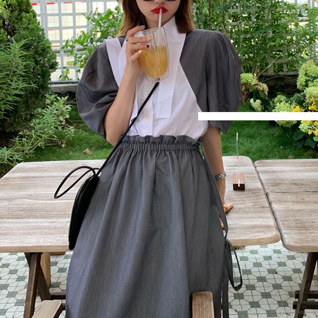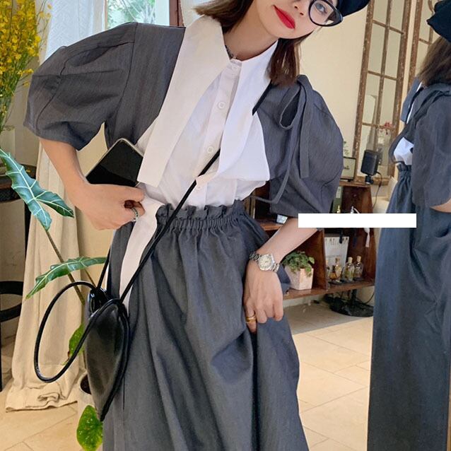 パッチワークシャッ+ストラップスカート2点セットアップ A0936