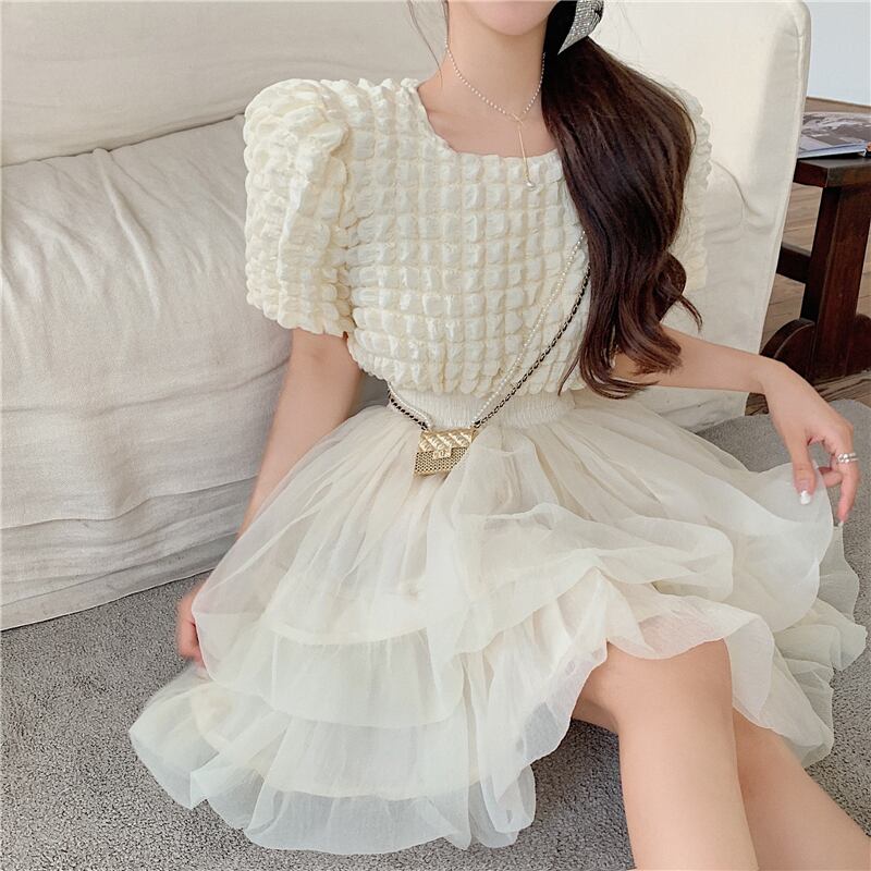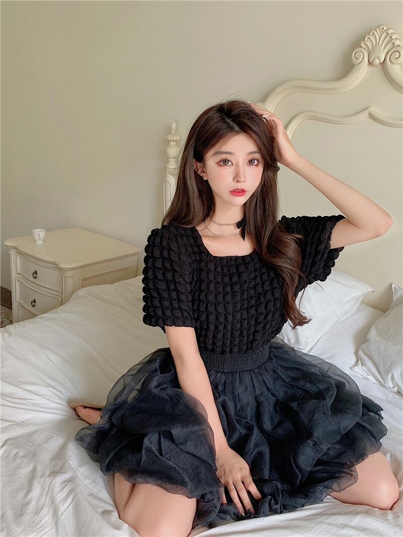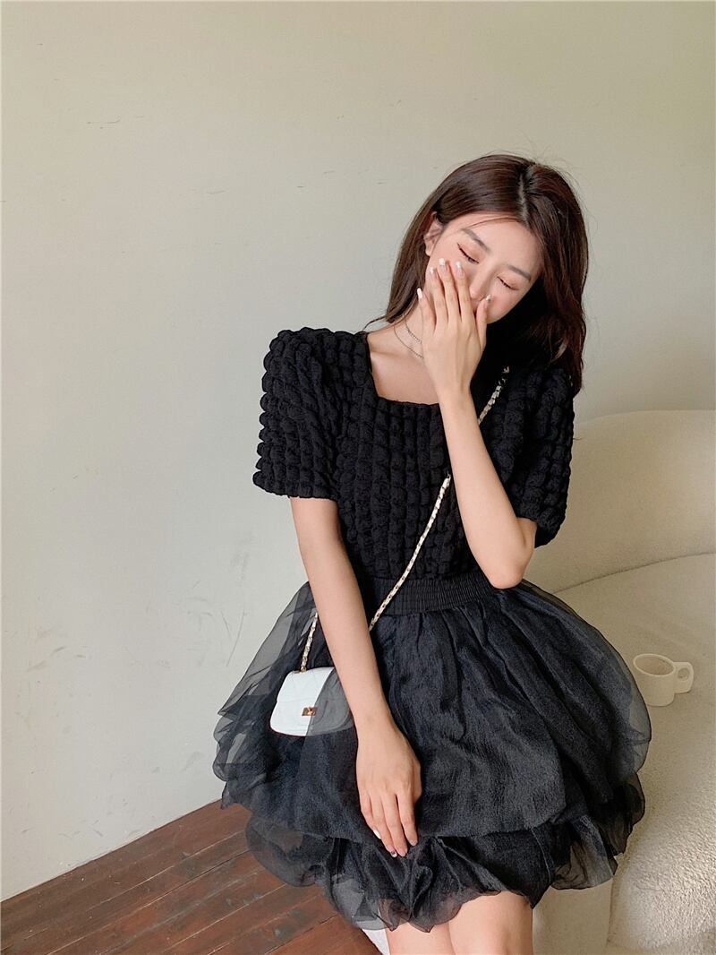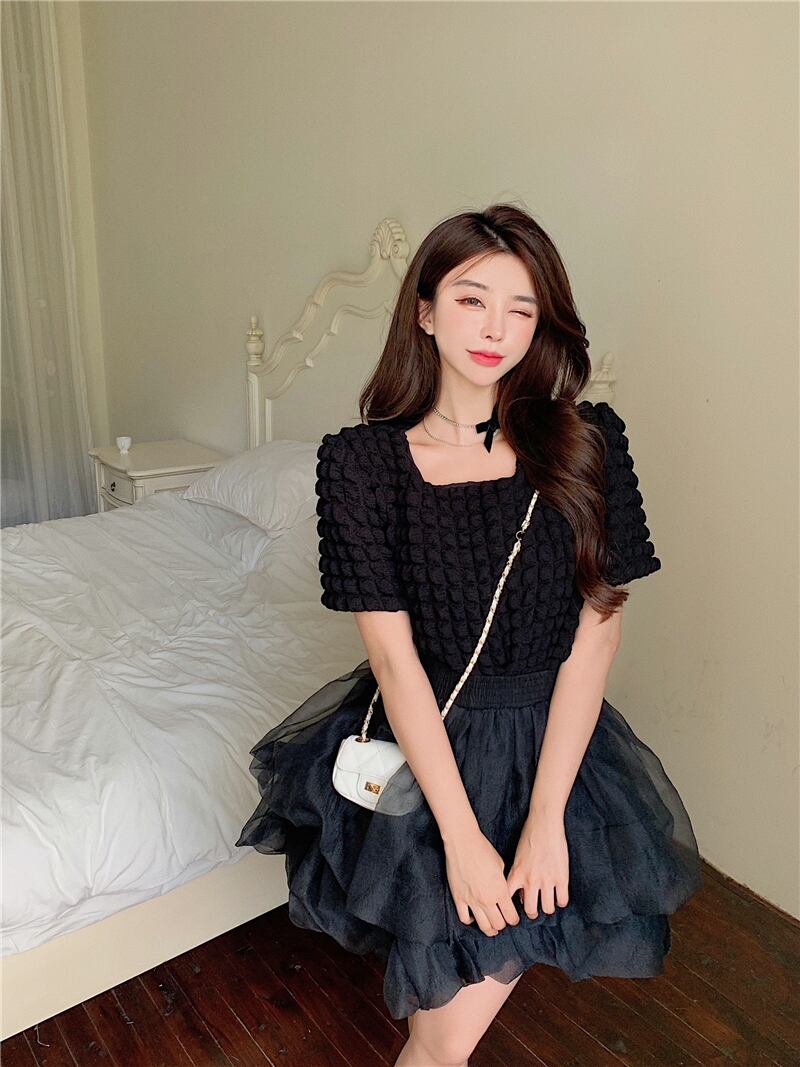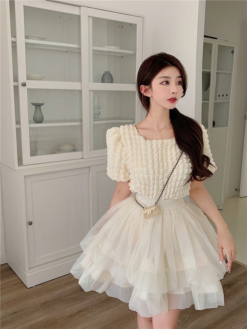 パフスリーブシャツ+ペティスカート2点セットアップ A0958