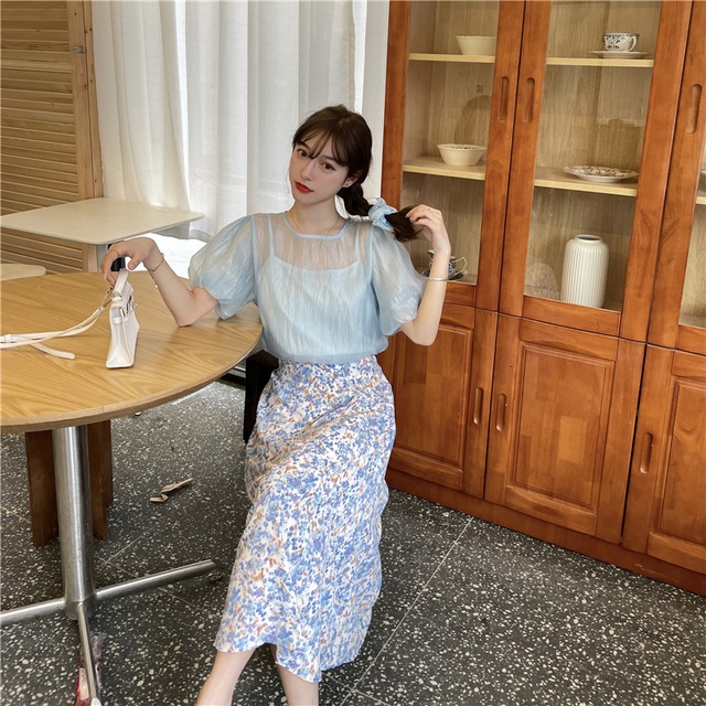透明感溢れ、おしゃれ2点セットアップブラウン
