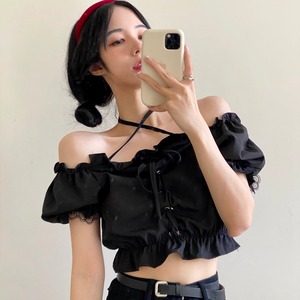 ブラック系、スリーブ付きトップス A1028
