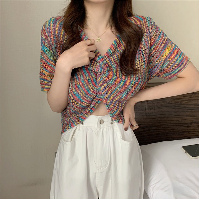 Vネッククロップドクロップトップ フリーサイズ 着丈:48㎝ 肩幅:43㎝ 袖丈:20㎝ 撮影時のライティング、PCやスマートフォンの環境により写真の色味が実際の商品と異なって見える場合がございます。 ご了承の上お買い求めくださいませ。 ------------------------------------------------------ 販売価格は、表示された金額(表示価格/消費税込)と致します。 送料は別途かかります。 ◎いかなる場合でもご注文後のキャンセルはお受けいたしかねます。 *ご注文からお届けまでの期間* 即納商品:ご購入後より4-10日営業日 一度のお会計で複数ご購入頂いた場合、お届け時期が 遅い商品に合わせての発送となりますのでご了承下さい。 ※年始・GW・お盆・年末等を挟む場合はプラス1週間程のお時間をいただきます。 (他の仕事等、多忙の期間は発送が遅れる場合がございますのでご了承ください。) 商品に欠陥がある場合を除き、基本的には返品には応じません。 -------------------------------------------------