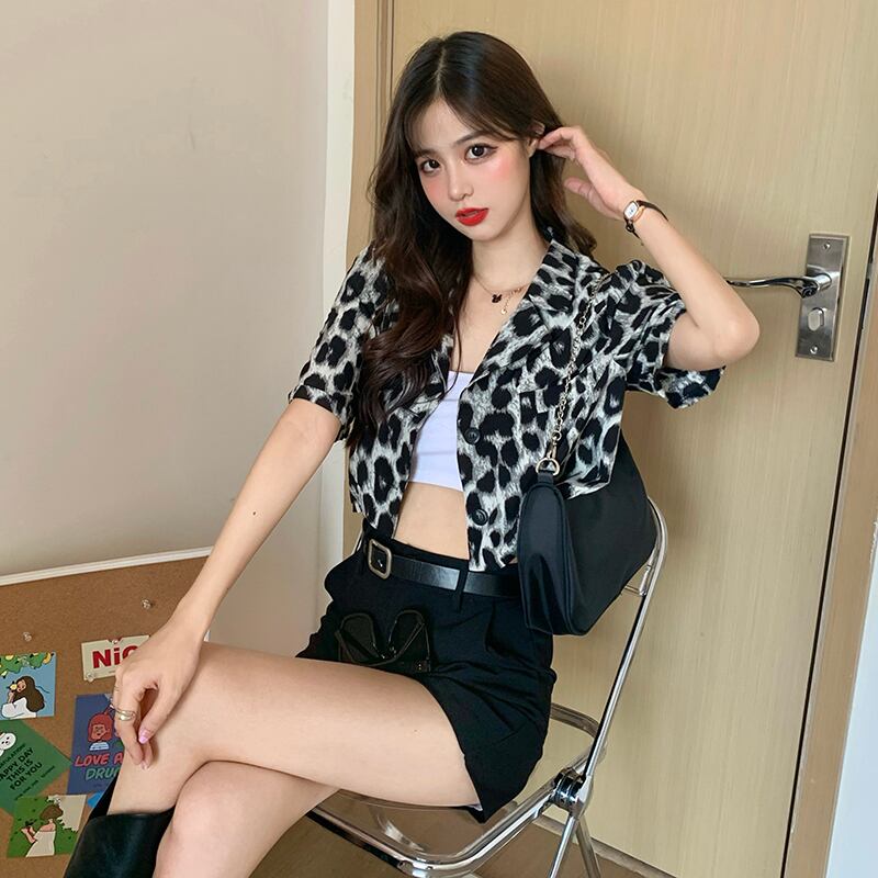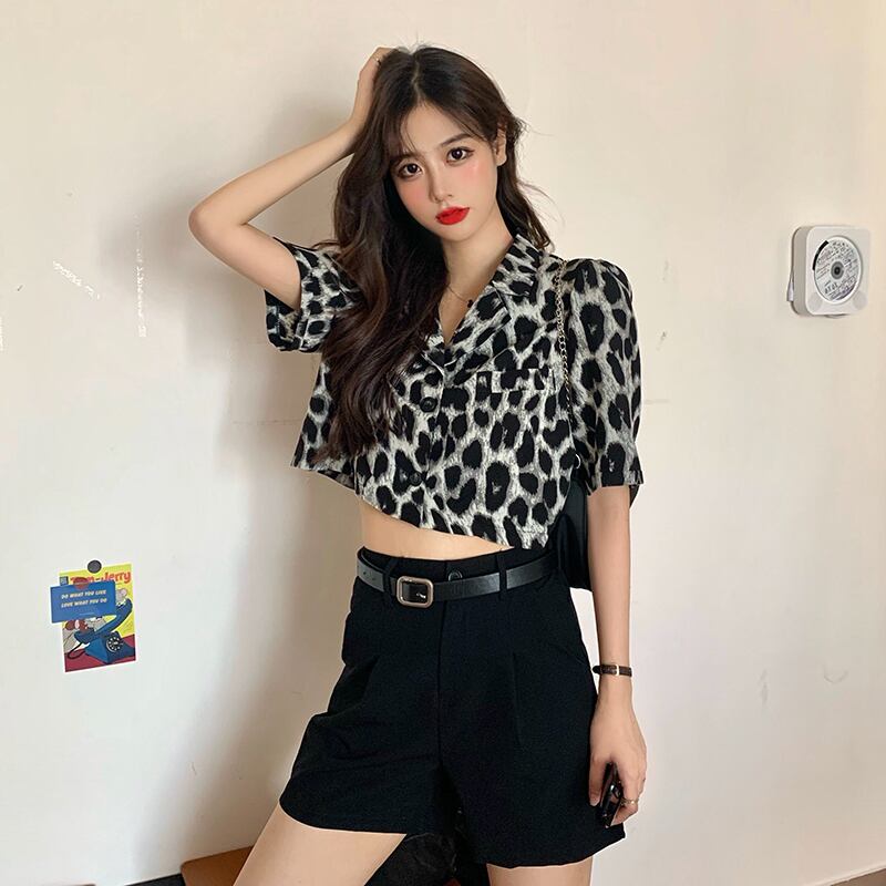 ファッション感アップ、ヒョウ柄シャツ A1044