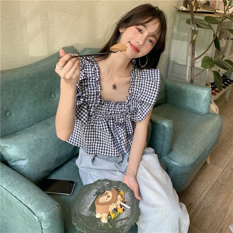 チェック柄スクエアカラーシャツ A1080