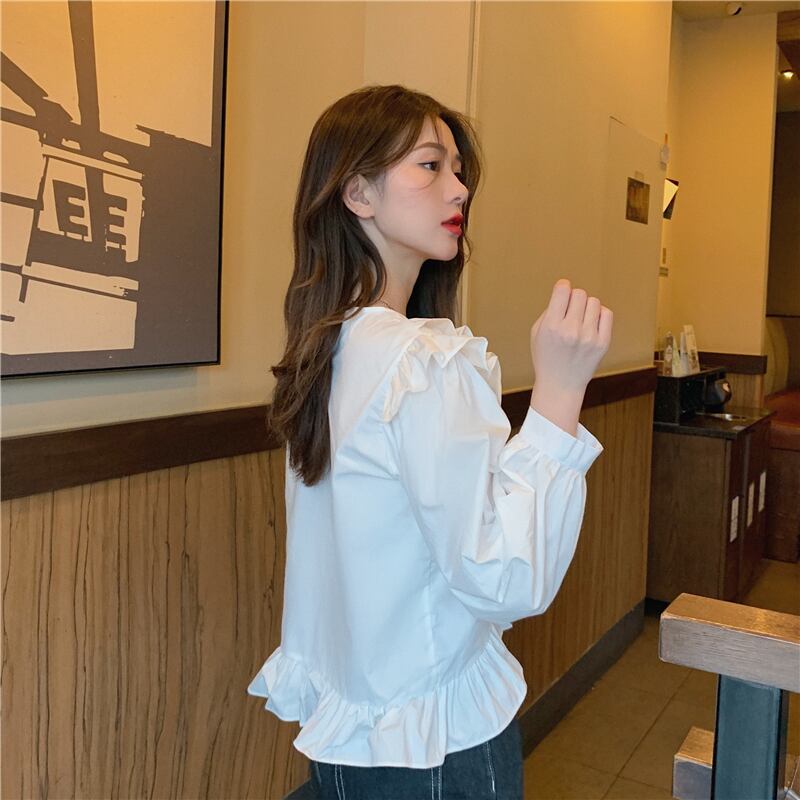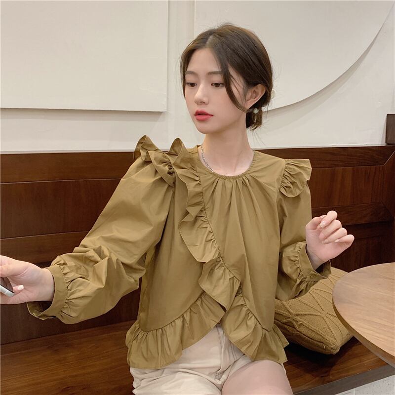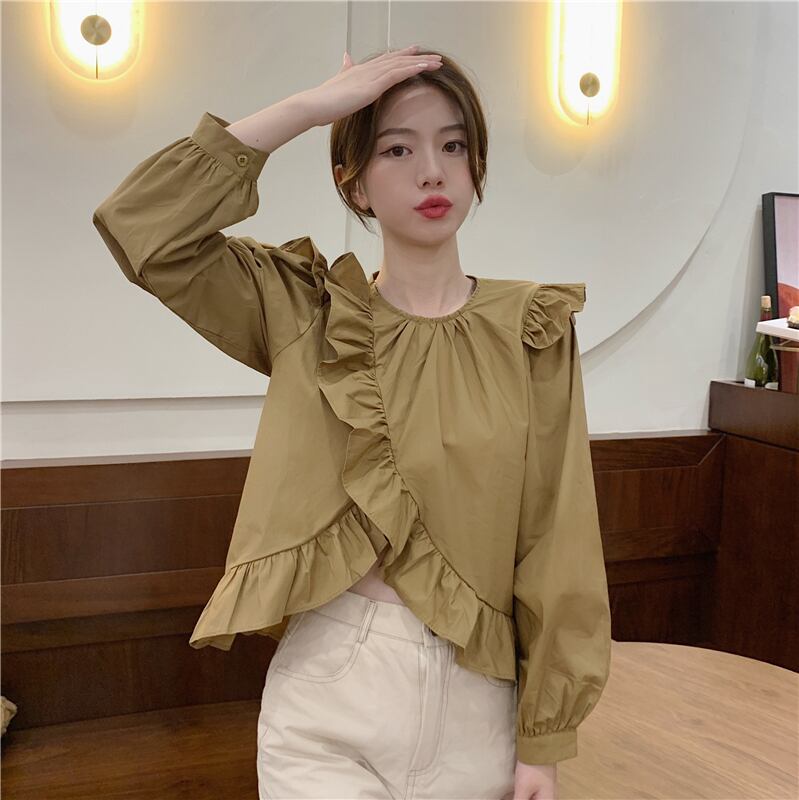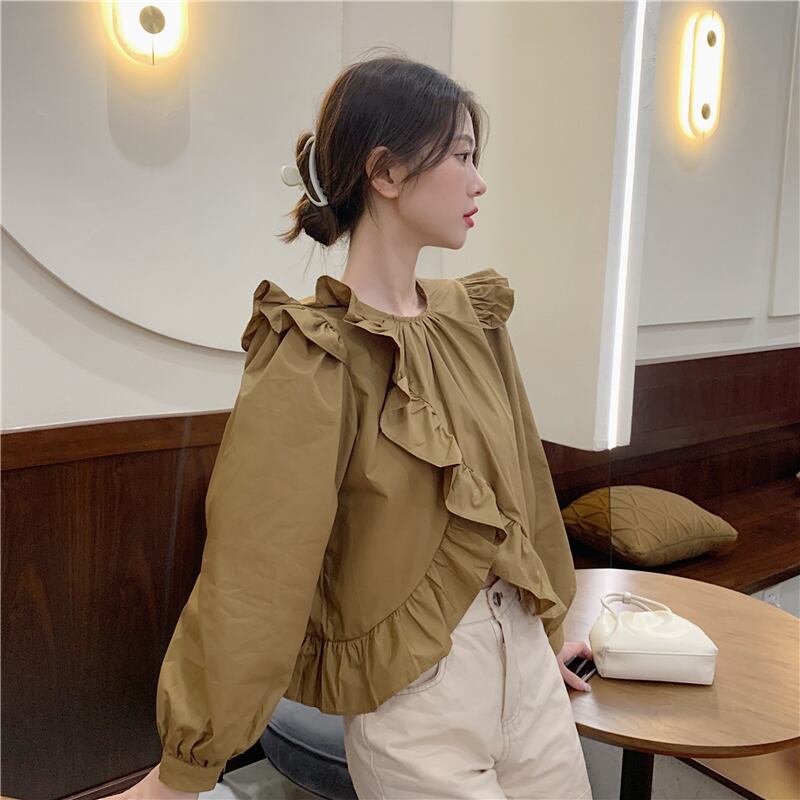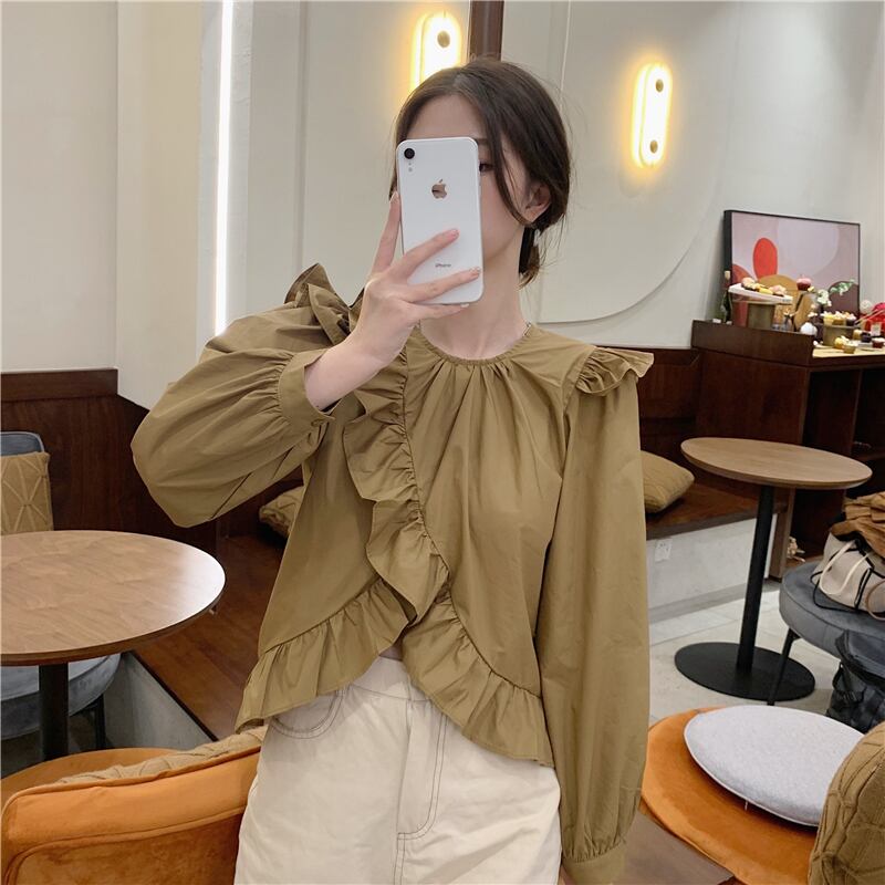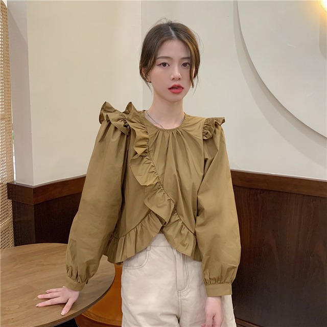 可愛いパフスリーブ2色シャツ A1100