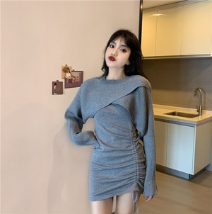 【2点set】秋新作エレガンス着瘦せ2点セットアップ