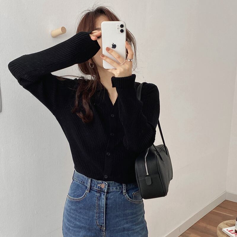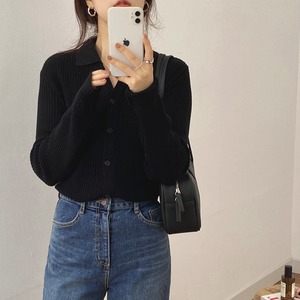 ベーシックリブニットポロ 2色展開 ベーシックなアイテムなので デニムやスラックスなどシンプルな アイテムと相性抜群です♡ vに胸元があいてるのでアクセサリーなどを あわせるのがおすすめです。 秋冬に活躍間違いなしです♡ 着丈55cm バスト88-110cm 袖丈58cm