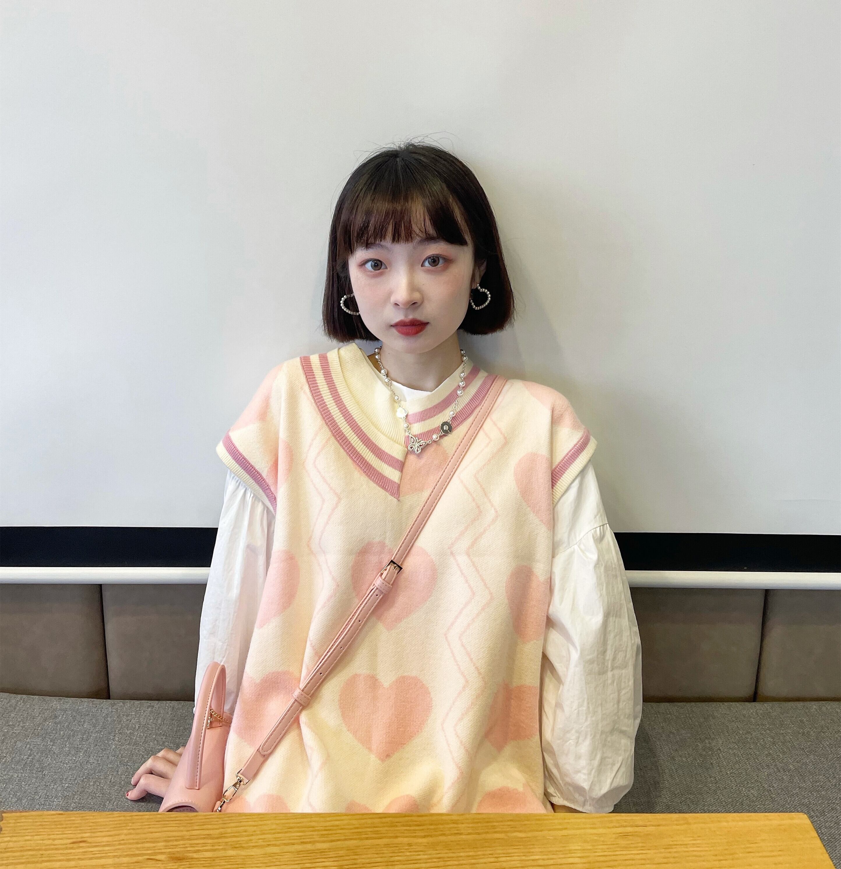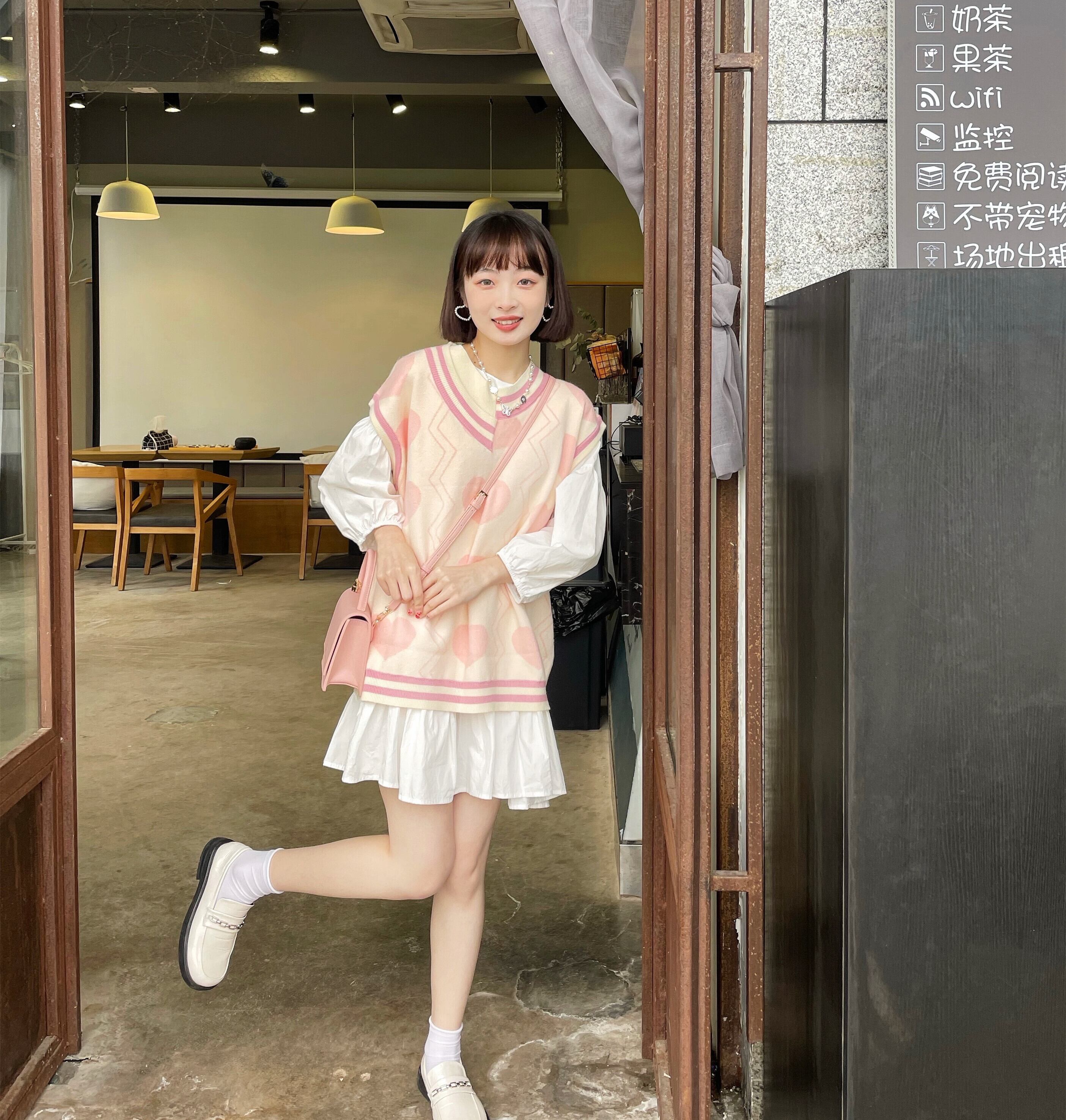 可愛い、ハート柄ワンピースセーター2点セット A01150