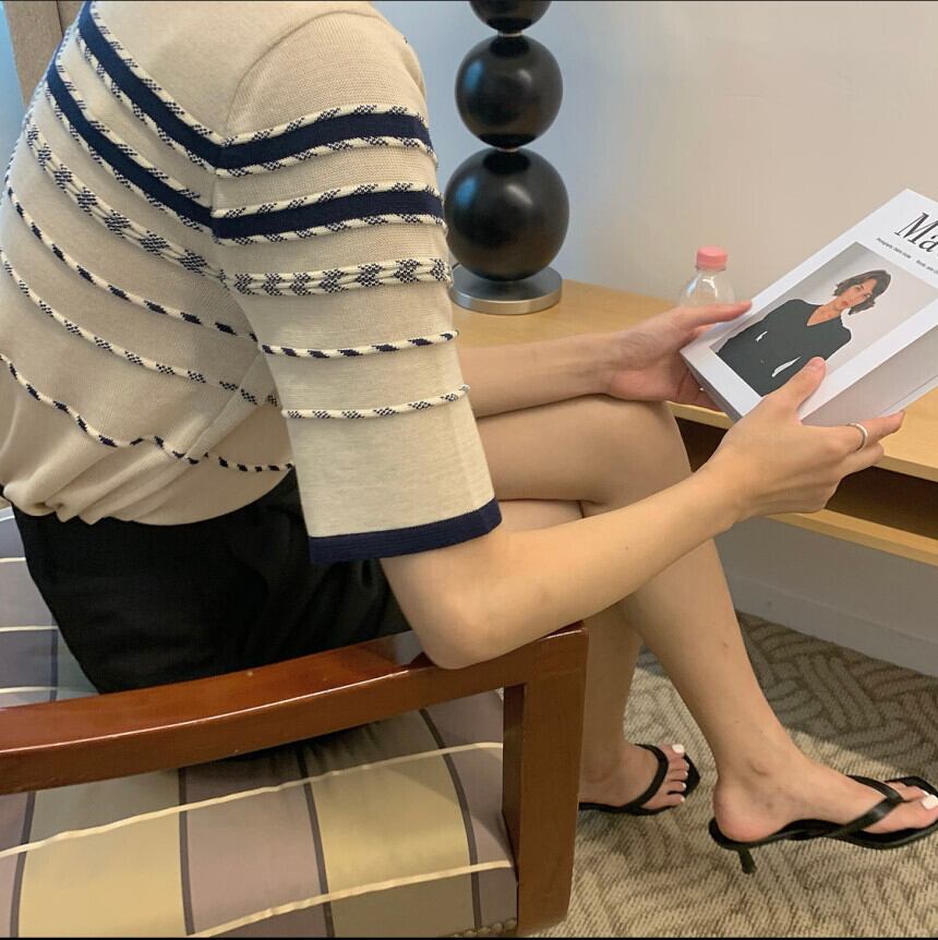 ストライプニット フリーサイズ 着丈:47㎝ バスト:83㎝ 肩幅:34㎝ 袖丈:21㎝ 撮影時のライティング、PCやスマートフォンの環境により写真の色味が実際の商品と異なって見える場合がございます。 ご了承の上お買い求めくださいませ。 ------------------------------------------------------