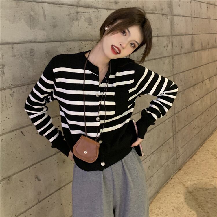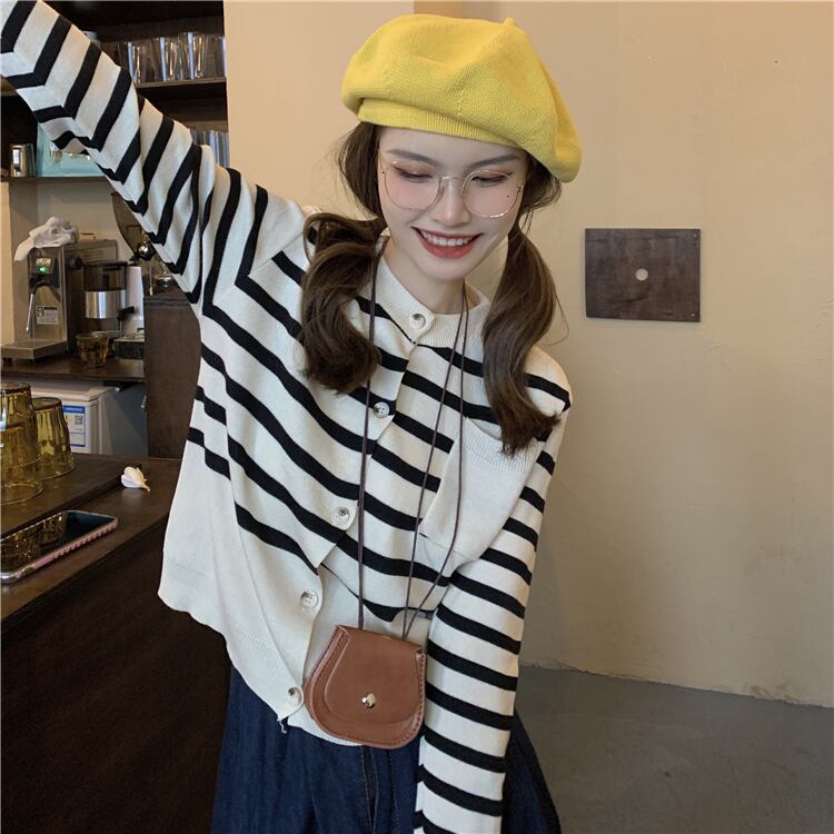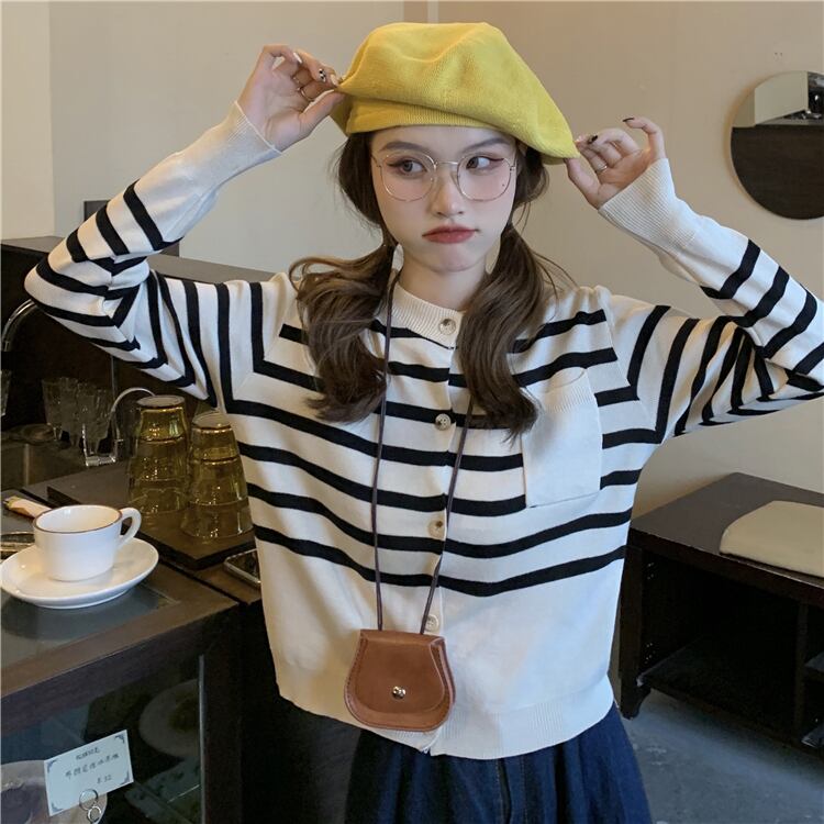 カジュアルストライプニート フリーサイズ 着丈:53㎝ バスト:110㎝ 肩幅:40㎝ 袖丈:53㎝ 撮影時のライティング、PCやスマートフォンの環境により写真の色味が実際の商品と異なって見える場合がございます。 ご了承の上お買い求めくださいませ。 ------------------------------------------------------
