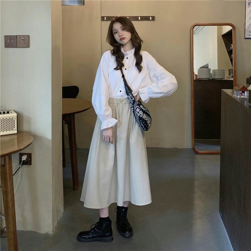 韓国風、おしゃれシャツスカート2点セット フリーサイズ シャツ 着丈:63㎝ バスト:106㎝ 袖丈:67㎝ スカート S 着丈:74㎝ バスト:60-66㎝ Ⅿ 着丈:75㎝ バスト:66-72㎝ 撮影時のライティング、PCやスマートフォンの環境により写真の色味が実際の商品と異なって見える場合がございます。 ご了承の上お買い求めくださいませ。 ------------------------------------------------------