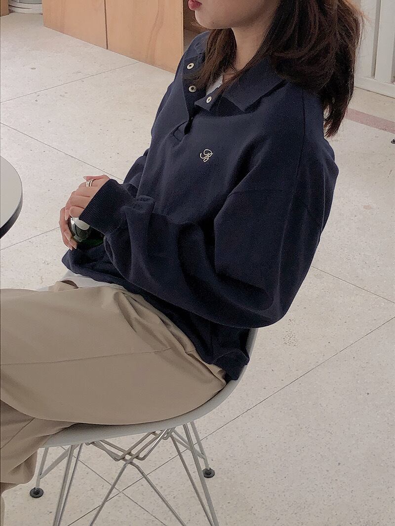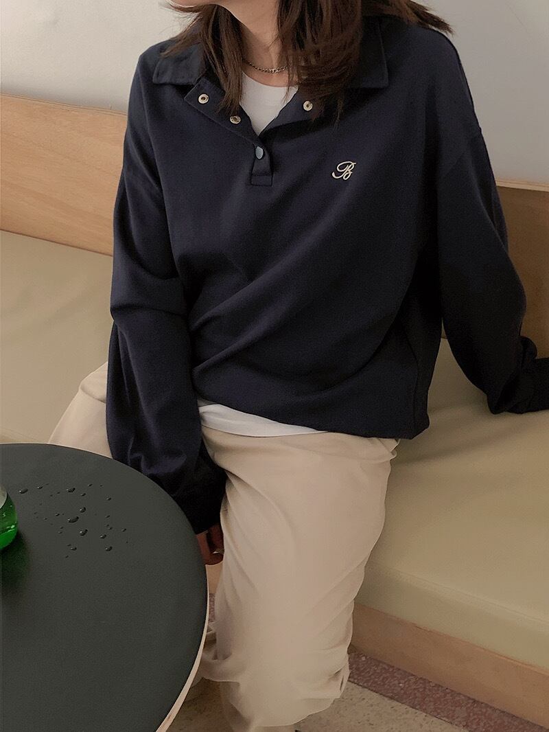 Bロゴプルオーバー フリーサイズ 着丈:70㎝ バスト:124㎝ 肩幅:53㎝ 袖丈:52㎝ 2色展開♡ ポロシャツのようかかたちの トレーナー地のプルオーバー かわいいフォントのBがポイントに なるカジュアルガーリーなアイテム♡ ------------------------------------------------------