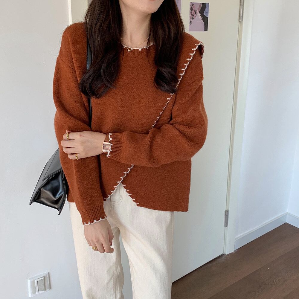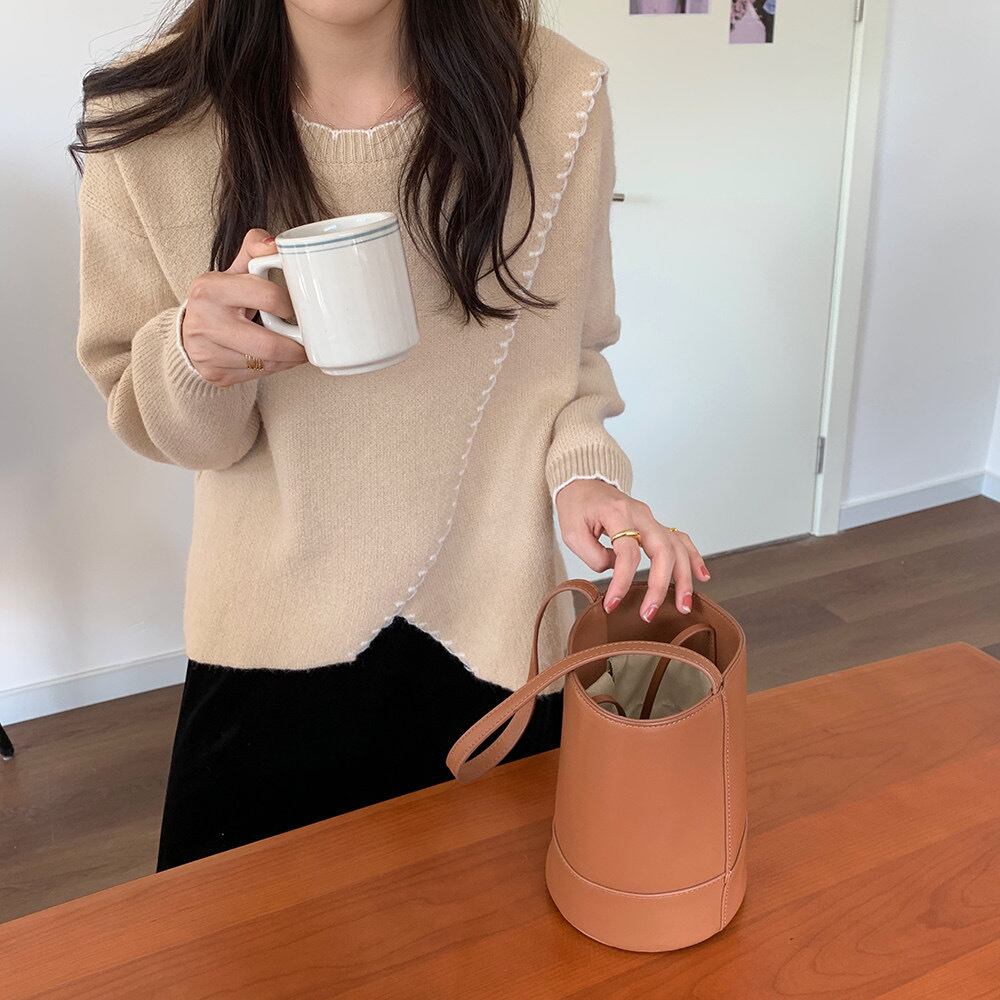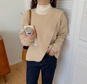 スカラップフリルニット フリーサイズ 着丈:65㎝ バスト:100㎝ 肩幅:43㎝ 袖丈:59㎝ 三色展開♡ フリルでパイピングされた デザインニット 細かめのフリルなので甘くなりすぎず 袖口までかわいい♡ タートルネックをレイヤードする 着回しもおすすめです。 ------------------------------------------------------