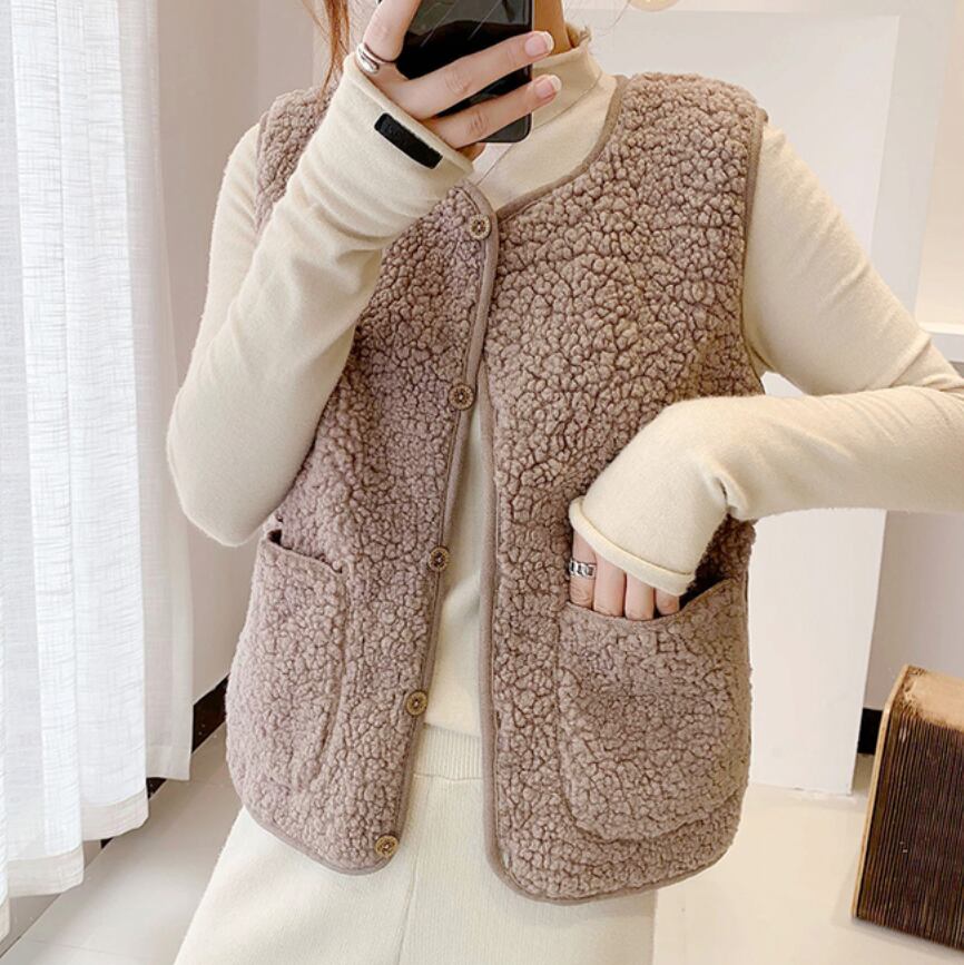 新作、ラムウールベスト フリーサイズ 着丈:64㎝ バスト:102㎝ 肩幅:41㎝ 3色展開♡ ラムウールの素材が 秋にも冬にも暖かく ふわふわして柔らかいアイテムで 皆さんにご愛用のデザインです♡ ------------------------------------------------------