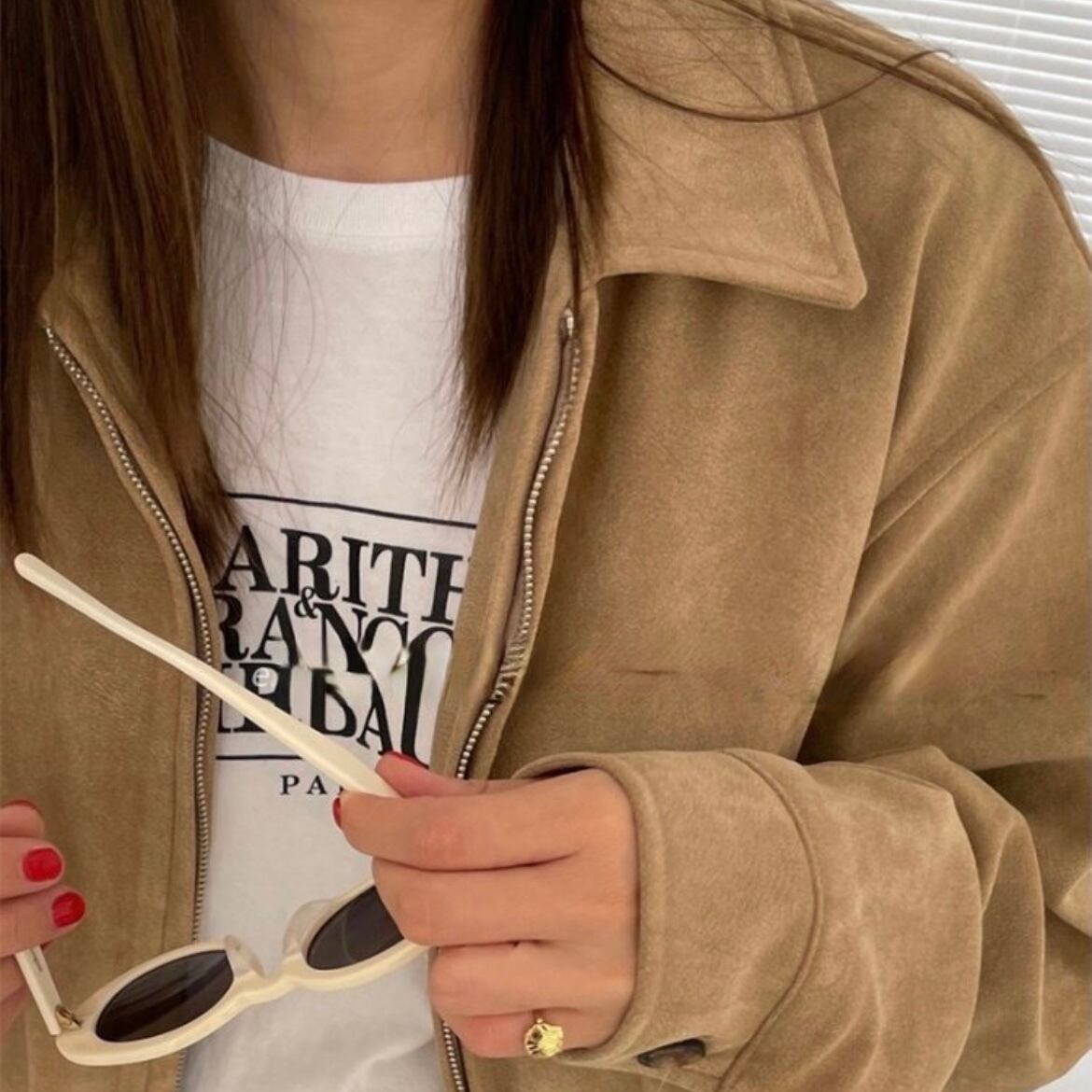スウェードカフェジャケット フリーサイズ 着丈:59㎝ バスト:114㎝ 袖丈:62㎝ 2色展開♡ カジュアルにもカジュアルガーリーにも 着られるスウェード生地の えりつきジャケットです。 韓国っぽなコーディネートにぴったりな カフェカラーがかわいい♡ ------------------------------------------------------