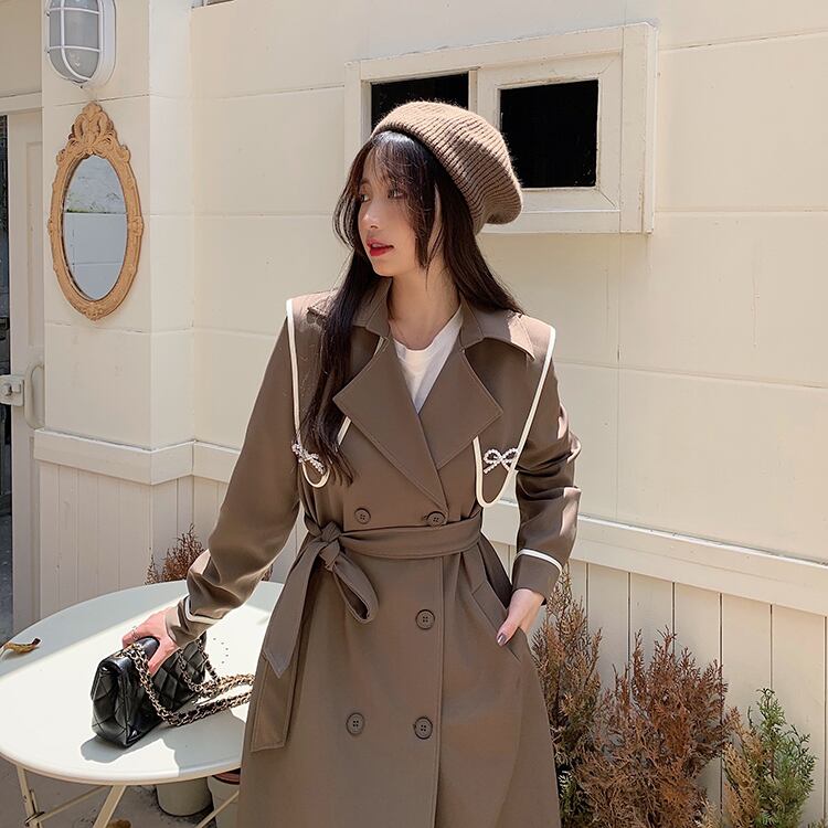 ロング着瘦せトレンチコート サイズ Ⅿ 着丈:103㎝ バスト:100㎝ 袖丈:60㎝ L 着丈:104㎝ バスト:104㎝ 袖丈:61㎝ 2色2サイズ展開♡ 秋冬に一枚ほしいト 着瘦せレンチコート♡ 襟に付けているブローチが 取り外し可能 生活にも仕事にも両立アイテム♡ ------------------------------------------------------