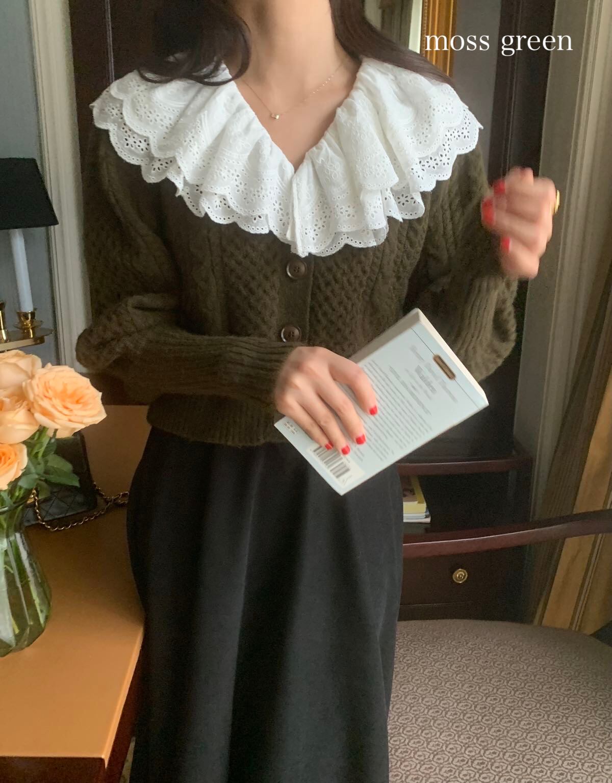 カントリーカーディガン フリーサイズ 着丈:54㎝ バスト:103㎝ 肩幅:36㎝ 袖丈:60㎝ 3色展開♡ カーディガンにコットンフリルがついた かわいらしいカーディガン。 スカートをあわせてよりかわいらしく パンツをあわせてカジュアルガーリーにも 着られます♡ 前を閉じてトップスのようにも カーディガンとして羽織としてもつかえます。 ------------------------------------------------------