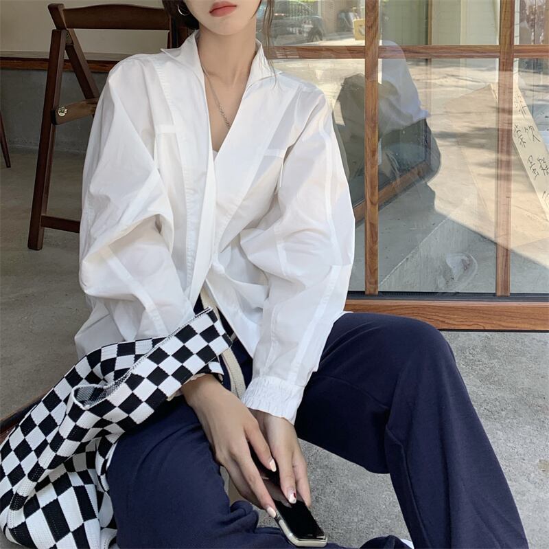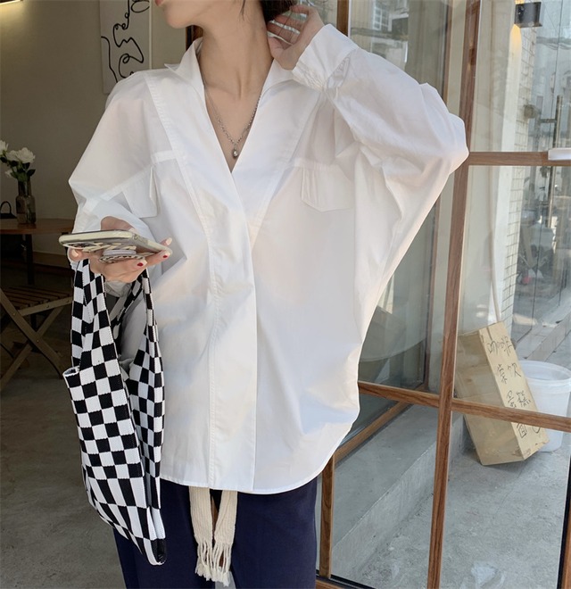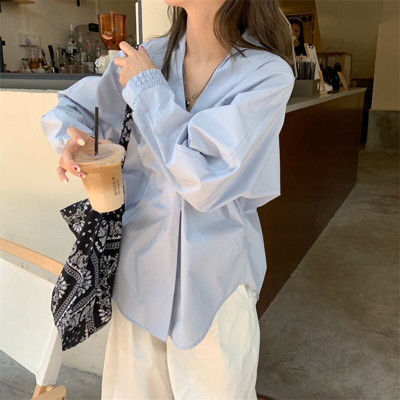 シンプルデザインシャツ フリーサイズ 着丈:67cm バスト:116cm 袖丈:67㎝ 撮影時のライティング、PCやスマートフォンの環境により写真の色味が実際の商品と異なって見える場合がございます。 ご了承の上お買い求めくださいませ。 ------------------------------------------------------