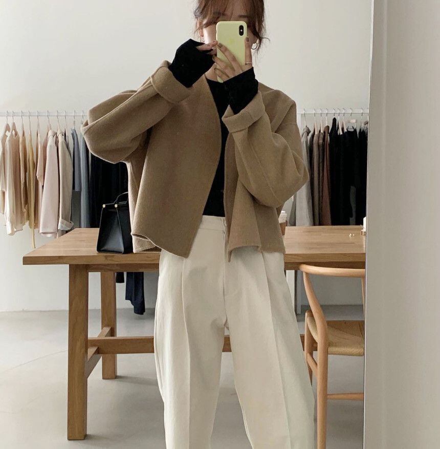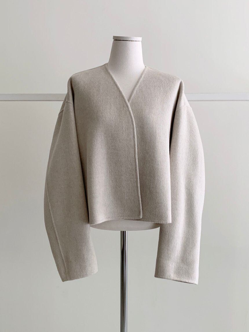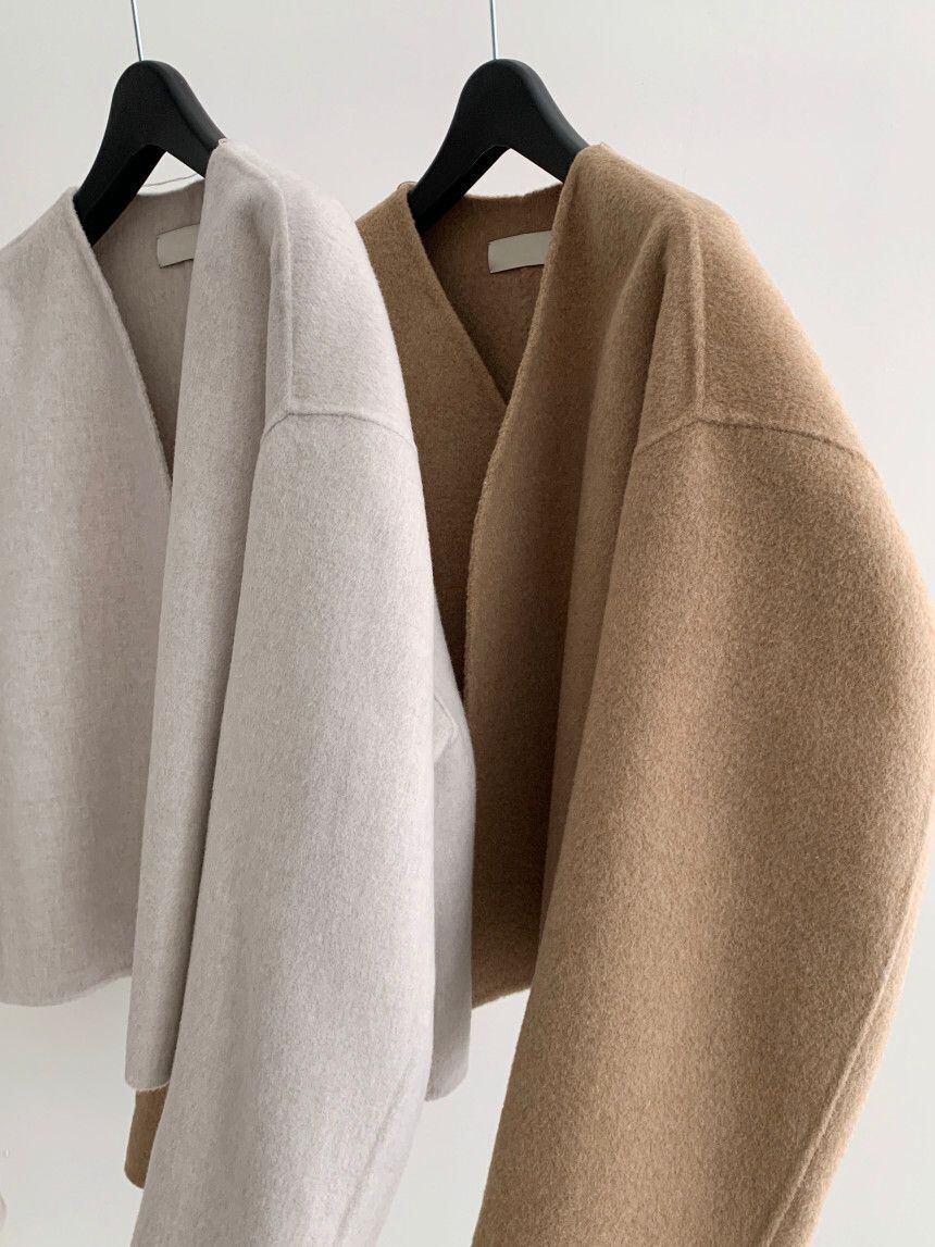 ウールのショートコート フリーサイズ 着丈56㎝ 肩幅54㎝ 袖丈56㎝ 撮影時のライティング、PCやスマートフォンの環境により写真の色味が実際の商品と異なって見える場合がございます。 ご了承の上お買い求めくださいませ。 ------------------------------------------------------