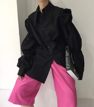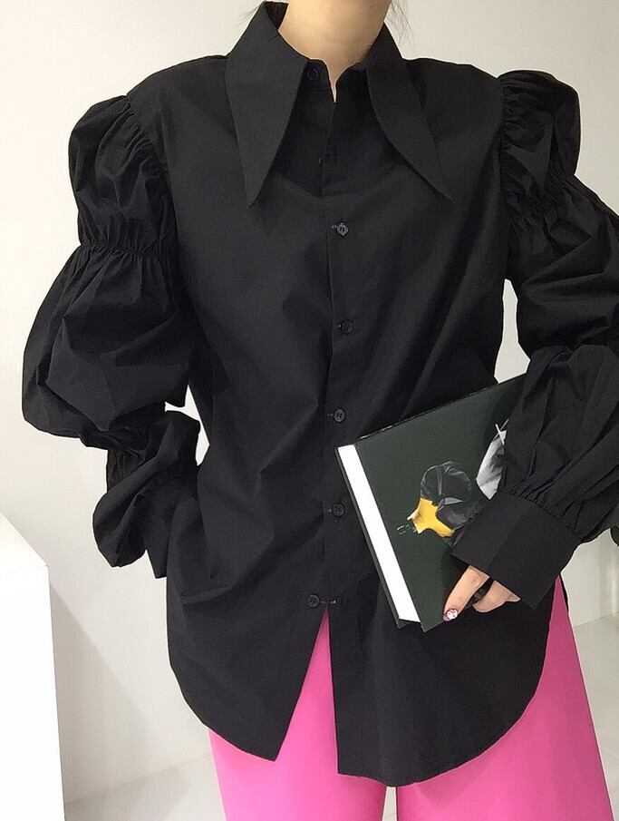 パフスリーブシャツ フリーサイズ 着丈74㎝ バスト110㎝ 肩幅40㎝ 袖丈68㎝ 撮影時のライティング、PCやスマートフォンの環境により写真の色味が実際の商品と異なって見える場合がございます。 ご了承の上お買い求めくださいませ。 ------------------------------------------------------