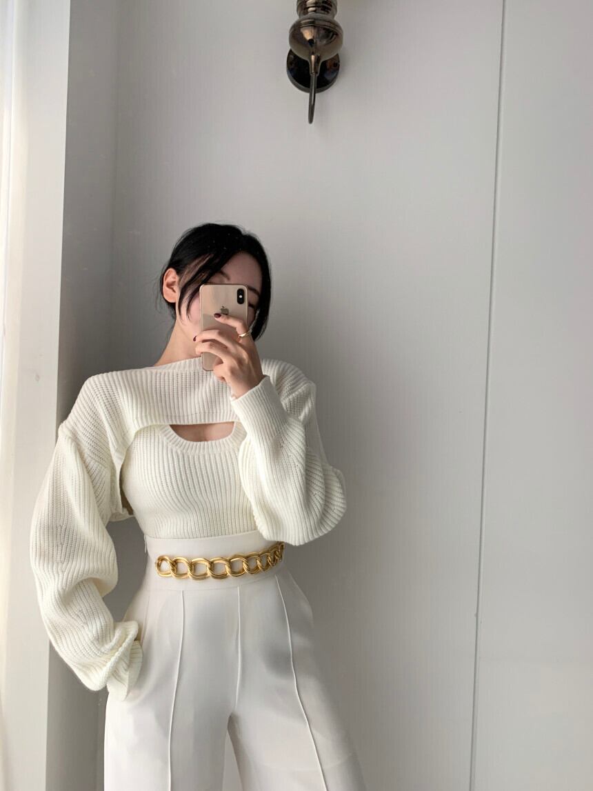 ブラウス2点ニットセット フリーサイズ キャミソール 着丈61㎝ 肩幅39㎝ ブラウス 着丈21㎝ バスト108㎝ 袖丈55㎝ 撮影時のライティング、PCやスマートフォンの環境により写真の色味が実際の商品と異なって見える場合がございます。 ご了承の上お買い求めくださいませ。 ------------------------------------------------------
