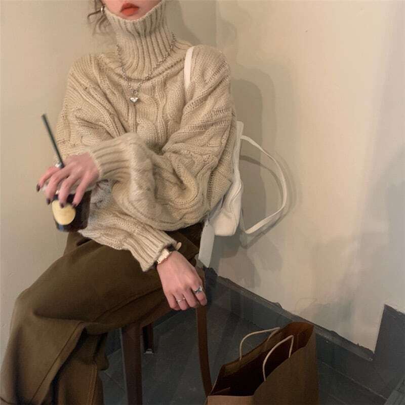 ハイネックボリュームケーブルニット フリーサイズ 着丈62cm バスト110cm 袖丈52cm 2色展開♡ ハイネックのケーブルニット 袖もとがバルーンのように ボリュームのあるデザインがかわいらしい アイテムです。 ハイネックなのであったかく 冬のマストアイテム♡ ------------------------------------------------------