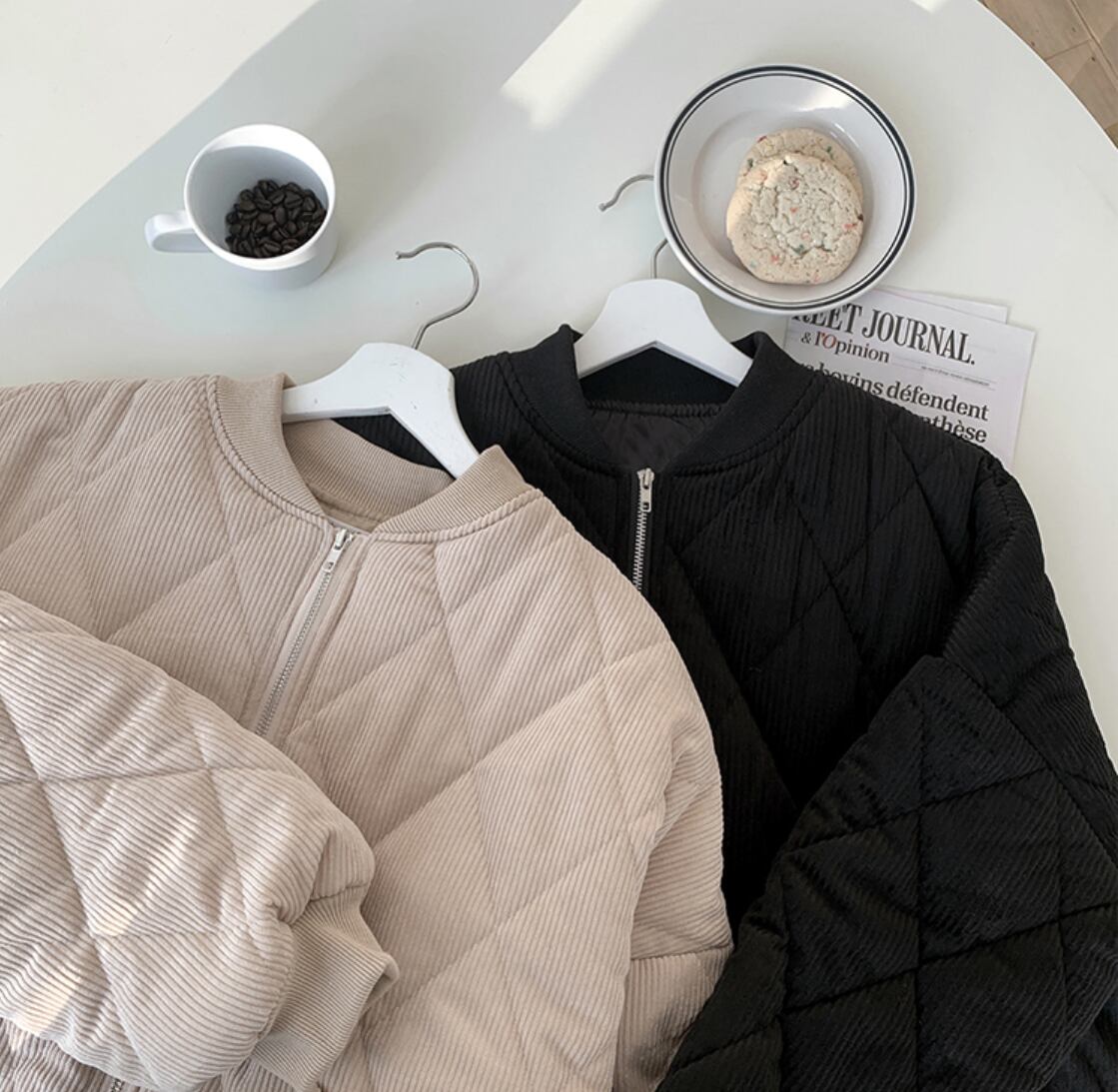 コーデュロイキルティングジャケット フリーサイズ 着丈69cm バスト130cm 袖丈41cm 二色展開♡ コーデュロイ×キルティングが 抜群にかわいいジャケット♡ ノーカラーなのでマフラーやパーカー、 キャップなどの小物も合わせやすく 使いやすいアウターです。 ------------------------------------------------------