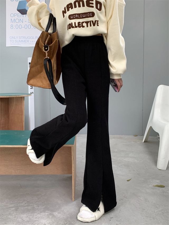 裏起毛、ブーツカットパンツ サイズ S 着丈 97㎝ ウエスト 60~ Ⅿ 着丈 98㎝ ウエスト 62~ L 着丈 99㎝ ウエスト 64~ 撮影時のライティング、PCやスマートフォンの環境により写真の色味が実際の商品と異なって見える場合がございます。 ご了承の上お買い求めくださいませ。 ------------------------------------------------------