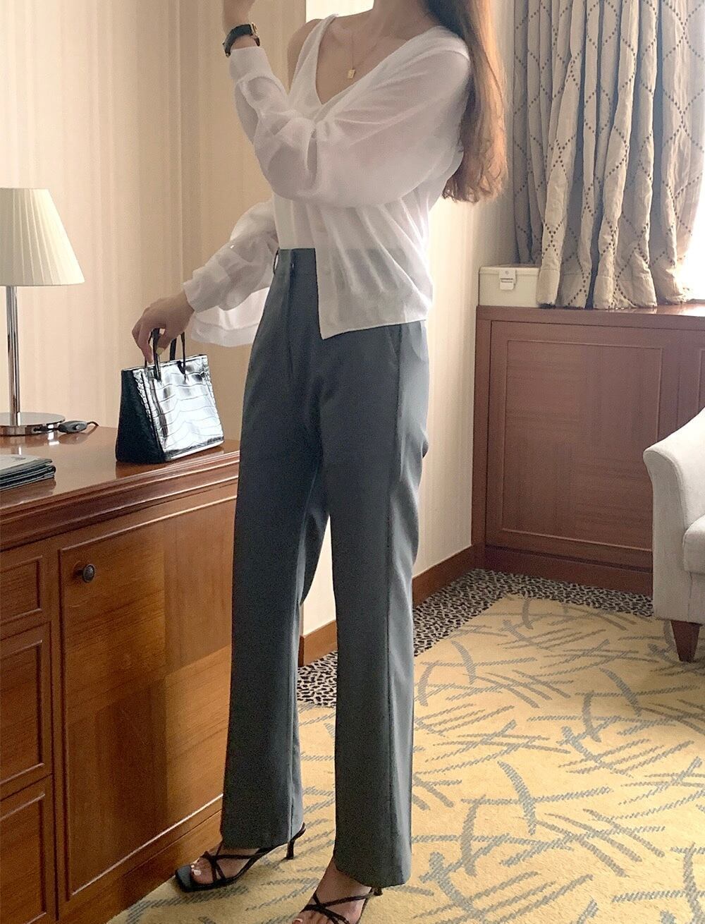 2色展開♡ カジュアルでデイリーユーズに ぴったりなスラックス。 すそがフレアなデザインがかわいいです♡ S:総丈97cm ウエスト66cm M:総丈98cm ウエスト70cm